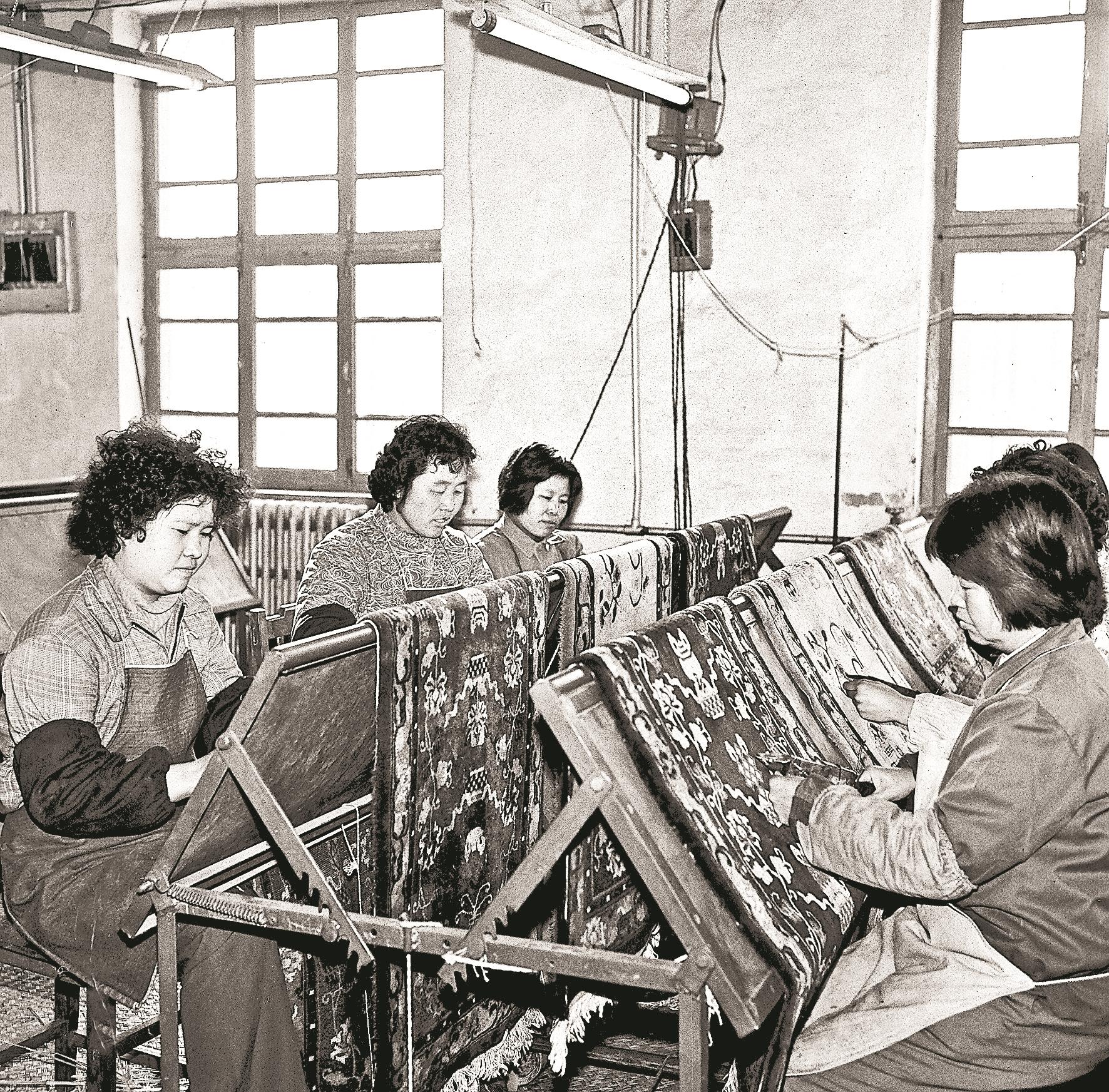 1976年,地毯车间独立建厂,更名为海勃湾地毯厂。此后,绘、织、平、剪、洗、染等生产工序逐步配套,年产能力达到1200平方米,该厂生产的东方仿古地毯全部供应出口,到1980年,连续4年超额完成国家计划。