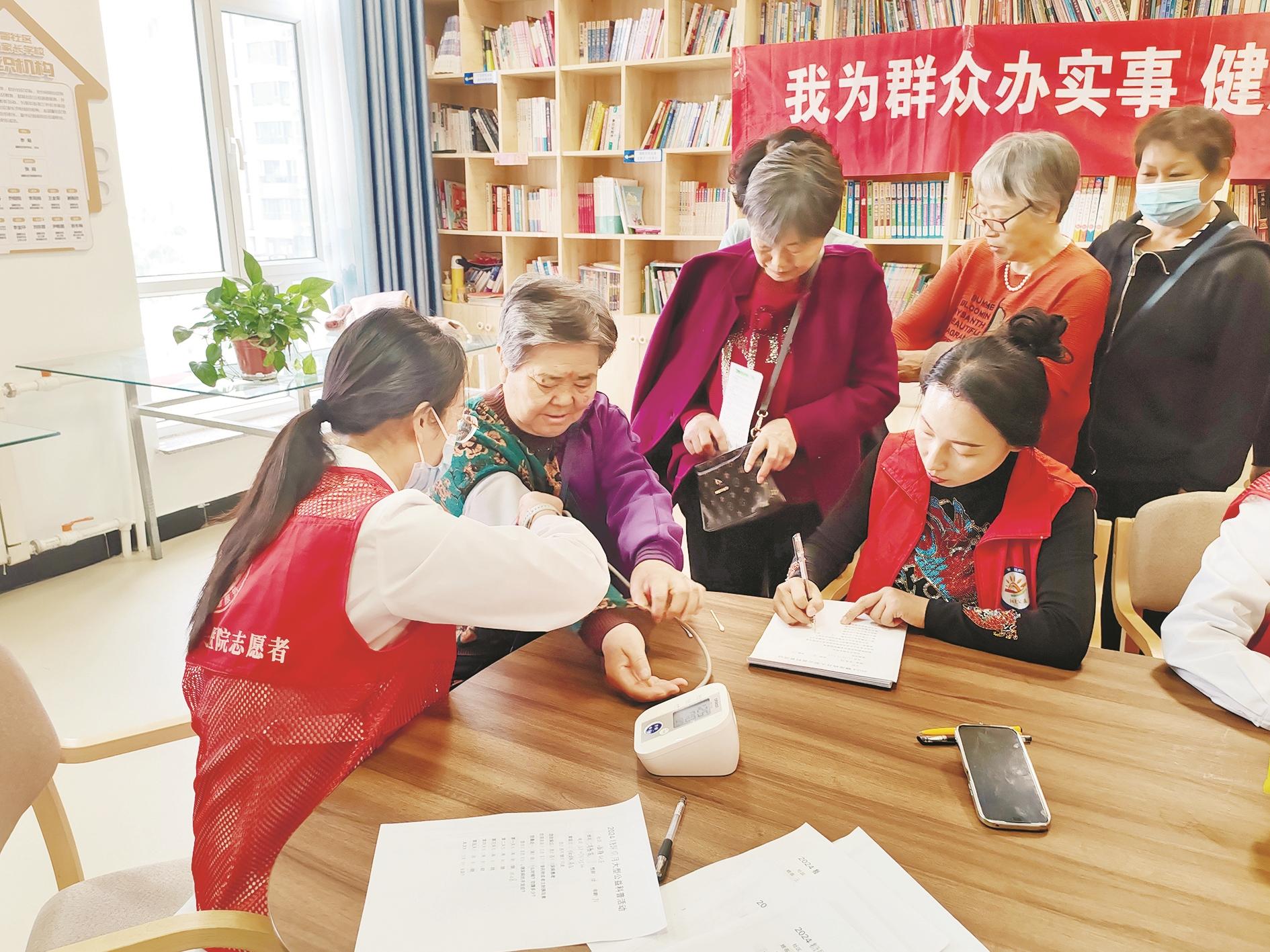 近日,海勃湾区林荫街道社区居家养老服务中心邀请市人民医院的医务人员开展健康讲座及义诊。活动中,医务人员有针对性地给出指导建议,同时科普健康知识和医学常识,帮助群众提高健康素养。 (张楚研 摄)