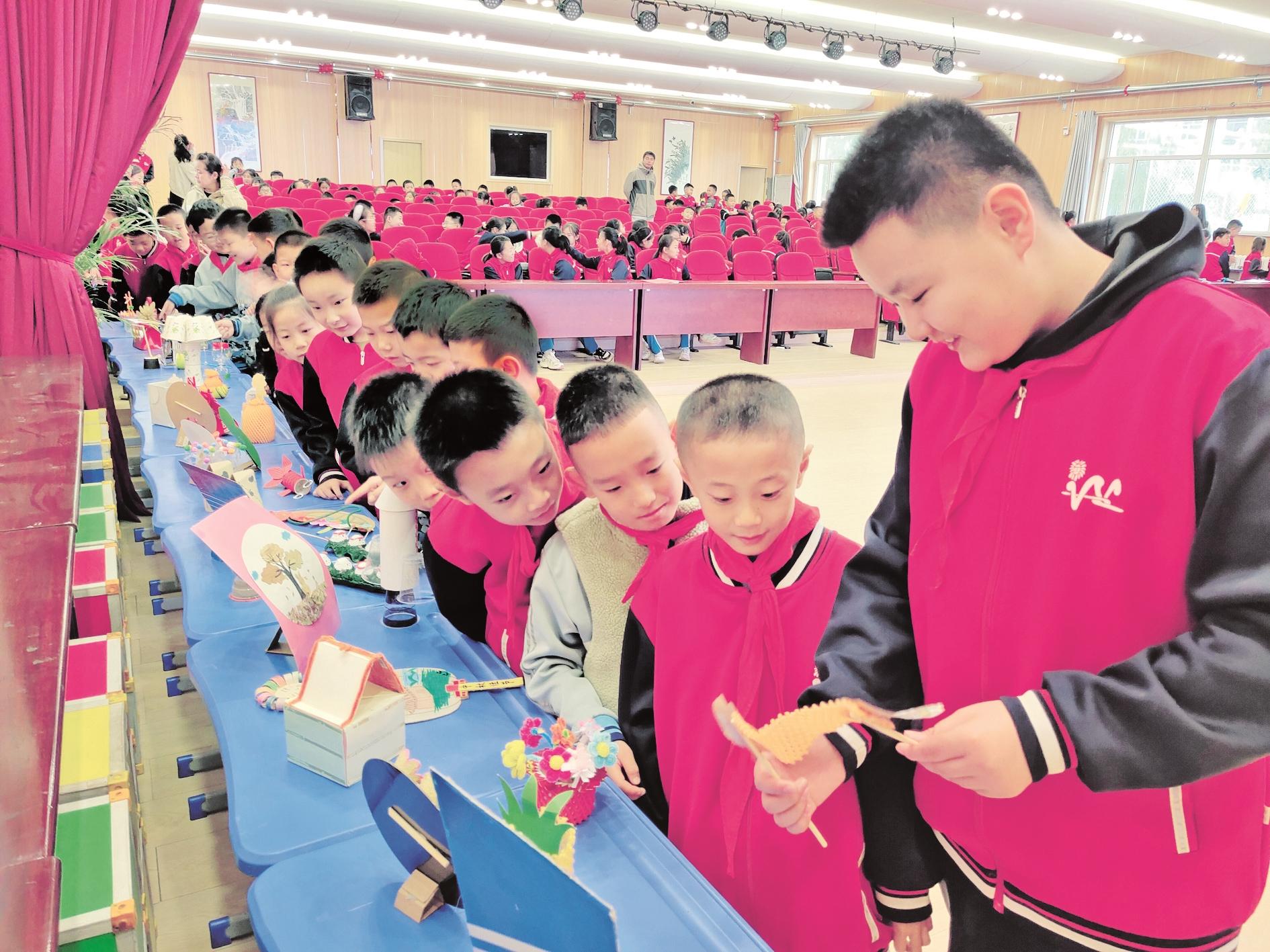 为培育和践行社会主义核心价值观,利用身边优秀的环保榜样,带动少年儿童关注科技发展,学习环保知识,10月21日,乌达区团结路小学开展了“科技筑梦 创想未来”2024年科技节启动仪式暨“新时代好少年”百件环保手工作品展活动。图为学生参观环保手工作品。 (陈洋 摄)