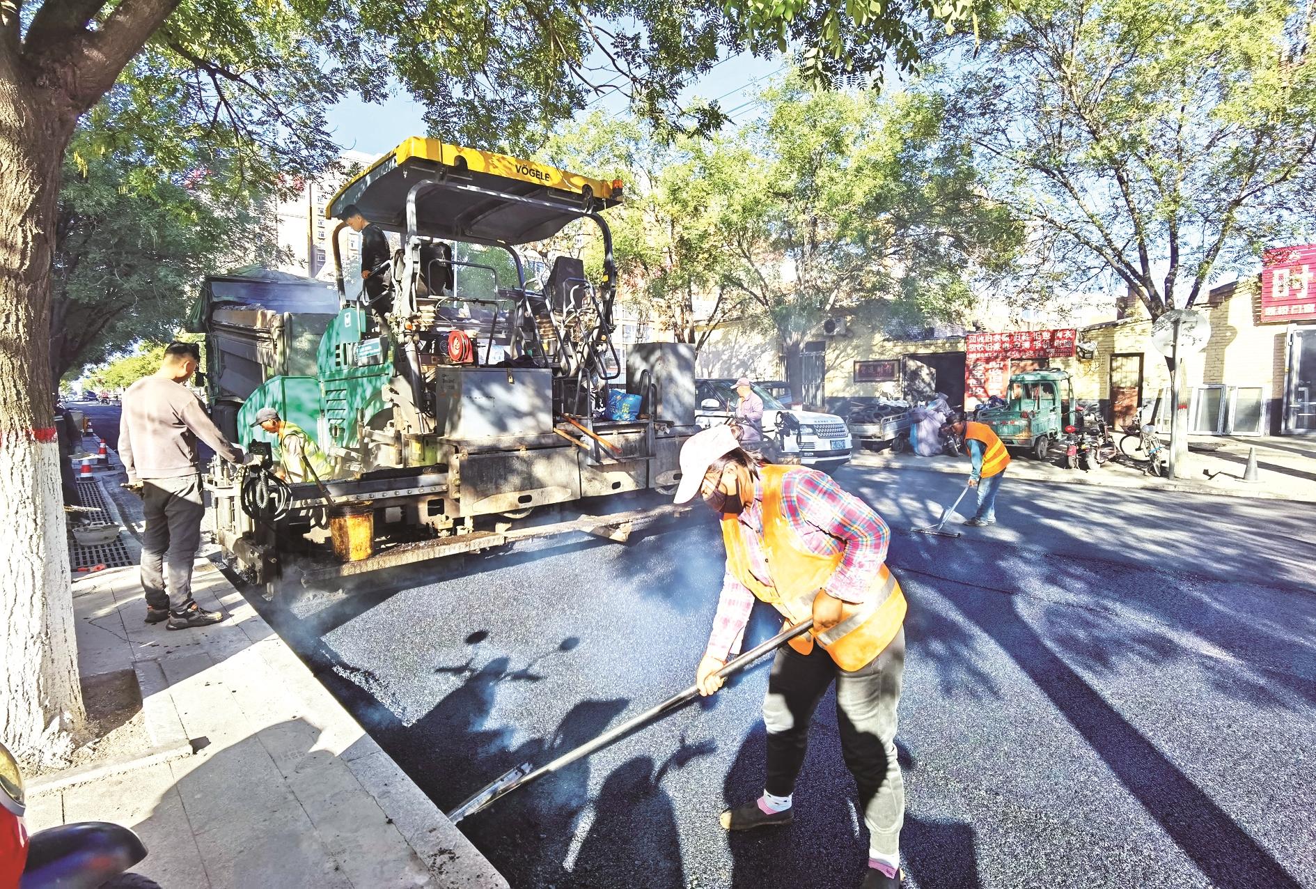 现场施工负责人赵旭表示,要想新旧路面接缝平整,除了压路机,还需要工人用耙子进行找平,凭手感去添补或去除沥青。“为了减少对城市交通的影响,我们通常在夜间进行路面铣刨,白天铺设。”赵旭说,他们还要对大庆路、青山路、乌兰路等12条道路的部分路段进行恢复工作,共计3.3万余平方米。