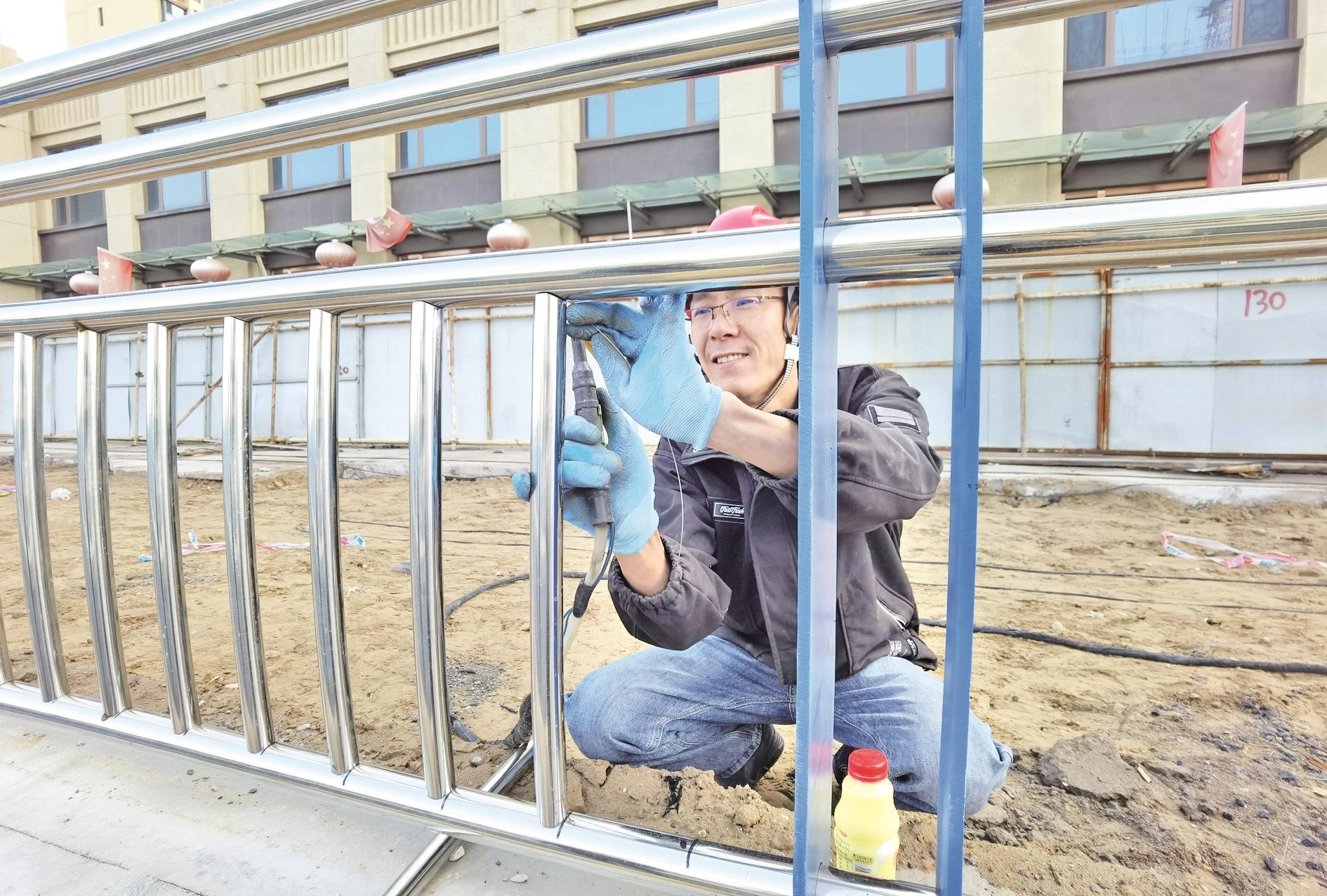 近日,记者在海勃湾区车站南路及立交桥改造工程现场看到,道路主体已经完工,但不同工种的工人正热火朝天地忙碌着相关的收尾工程。南端,正在进行和砂浆、运砖块、铺设、敲平等工作,几名工人紧密配合、有序完成;铁路桥下,1名工人身着工作服,手持喷射器给桥体喷涂防火涂料;北端,1名工人小心翼翼地将不锈钢管摆放、焊接,完成桥梁护栏的安装工作;检查井内外,两人协作,正在进行井内攀爬梯的焊接工作……