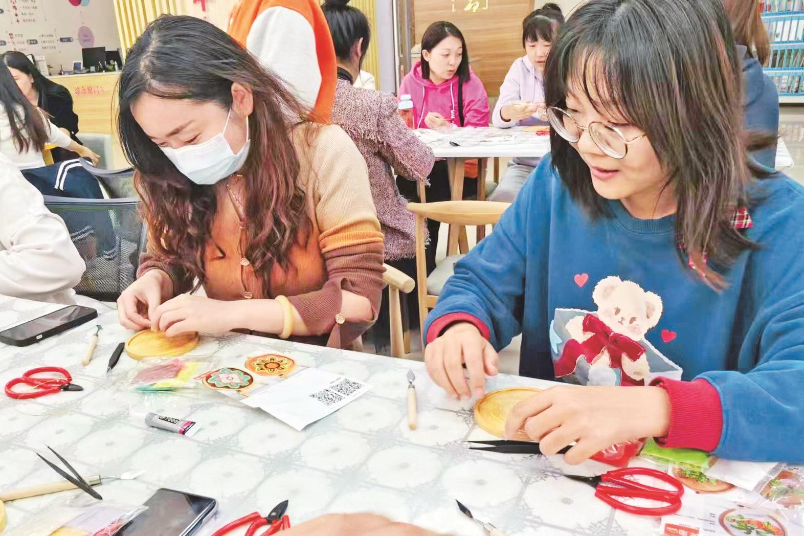 近日,海勃湾区妇联、滨河街道联合举办了“非遗文化进社区 掐丝杯垫传温情”手工制作活动。活动中,指导老师讲解了掐丝珐琅画的历史、工艺流程以及掐丝杯垫的制作方法。妇女群众在老师的指导下,经过绘画、上胶、掐丝、剪丝、着色等步骤后,创作出一个个精美的掐丝杯垫作品。 (黄建飞 摄)