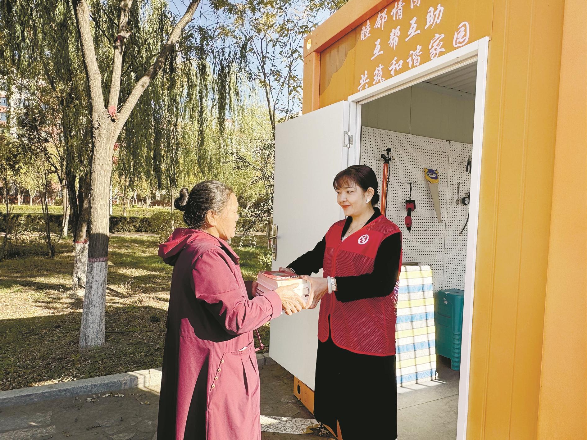 在海勃湾区蒙西·阳光丽舍A区,居民们从新时代文明实践共享互助服务点搬出椅子,一场居民征求意见会就召开了。“有了这个小屋还是挺方便的,大家下楼想坐着晒会儿太阳,就可以让物业工作人员打开小屋搬出椅子来坐下,有时候社区工作人员过来,我们就在这里说点诉求,确实挺方便的。”小区居民刘志刚说。