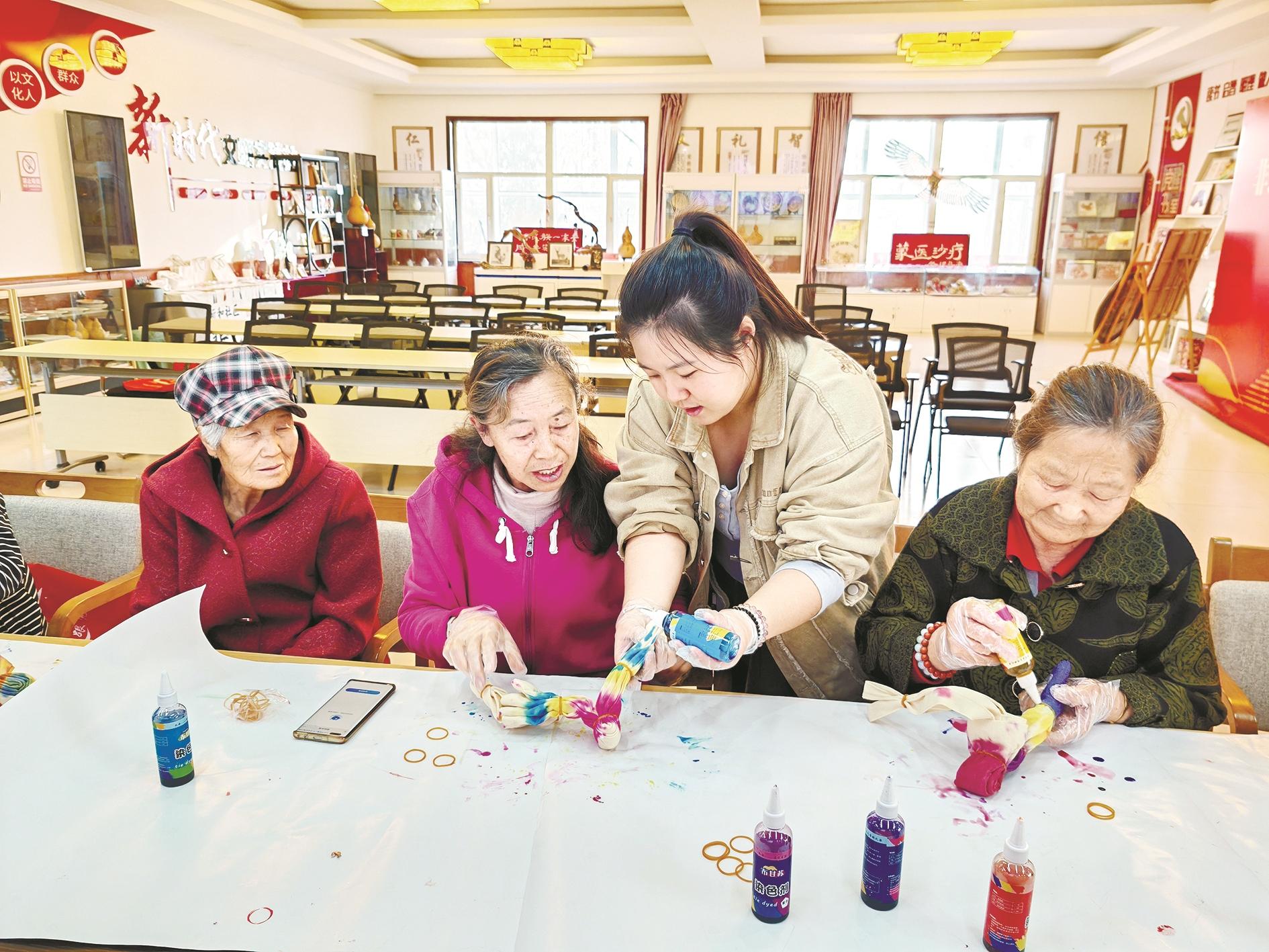 图③10月29日,海勃湾区千里山镇新和社区举办“非遗进社区 扎染工艺‘美’体验”主题活动,辖区居民亲自动手体验扎染制作过程,活动传承和弘扬了非遗文化,丰富了居民生活。 (张楚研 摄)