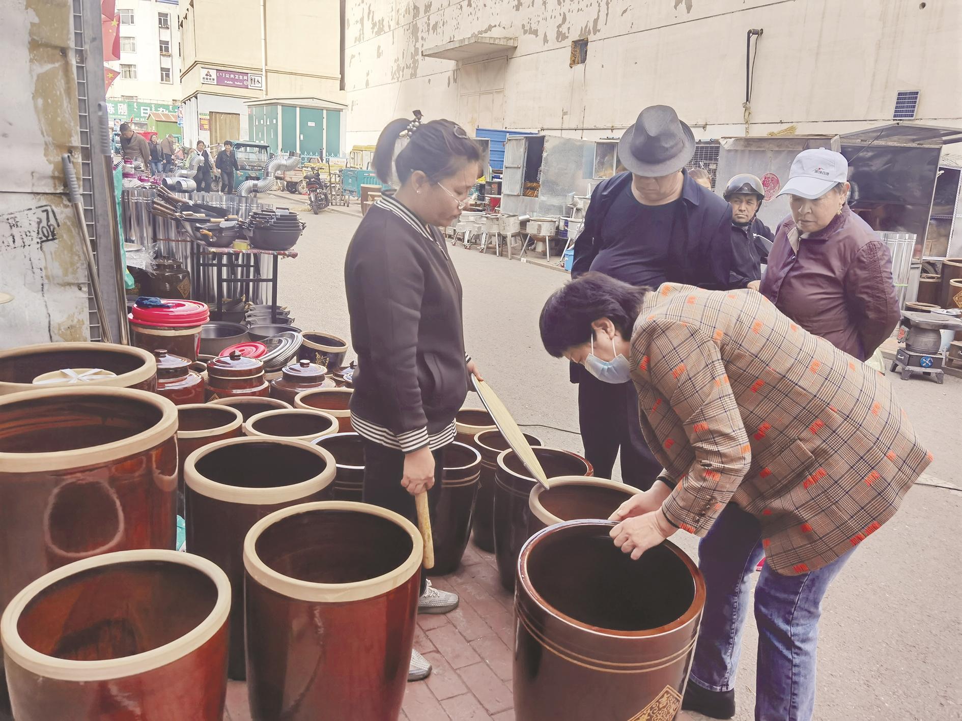 “这些天购买菜缸的人很多,有的需要小一些的菜坛子腌咸菜,有的则需要大一些的腌酸菜。”店主告诉记者,现如今的菜缸在重量、外观等制作工艺上有了很大改变,不仅容易搬动,摆在家中还很美观。