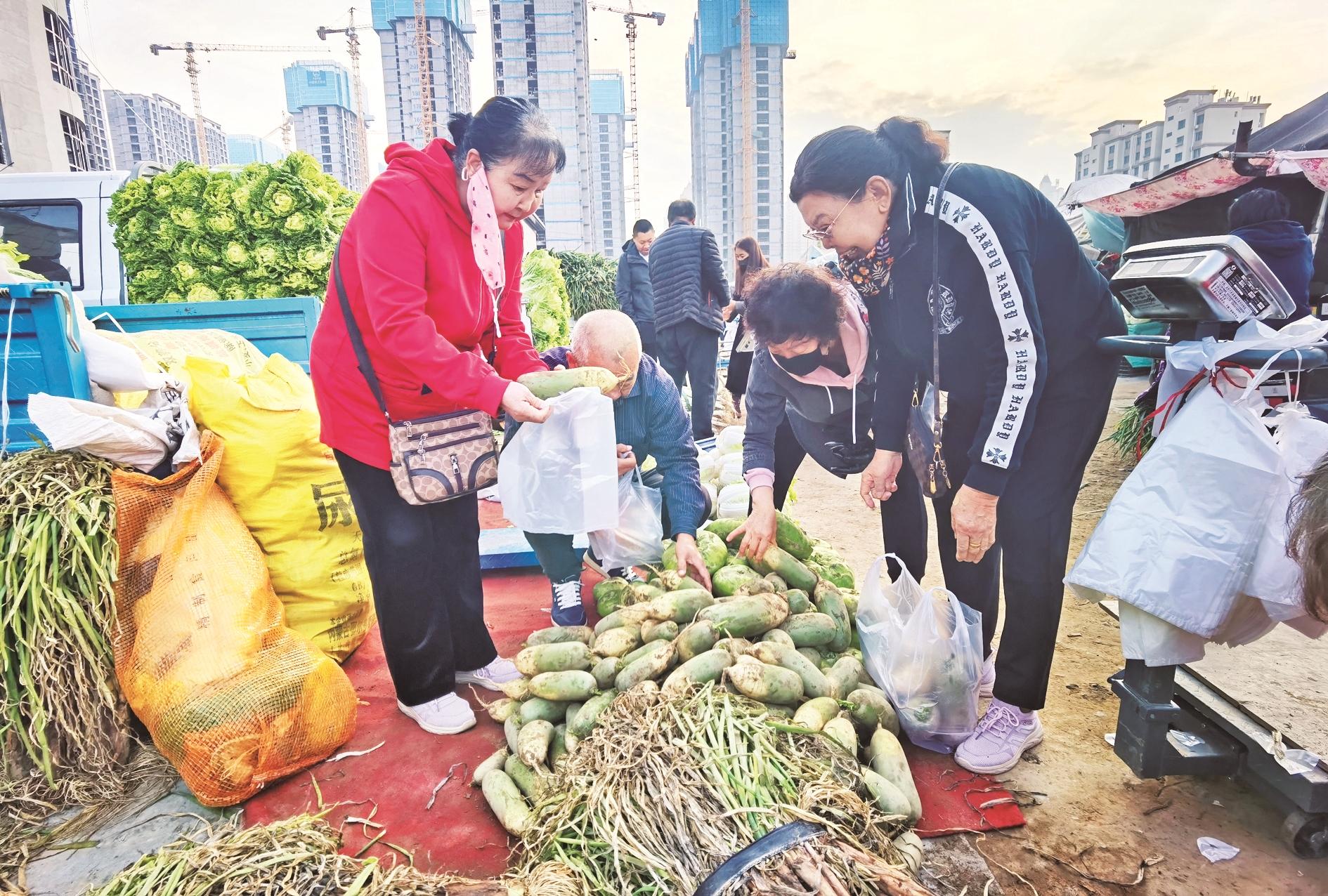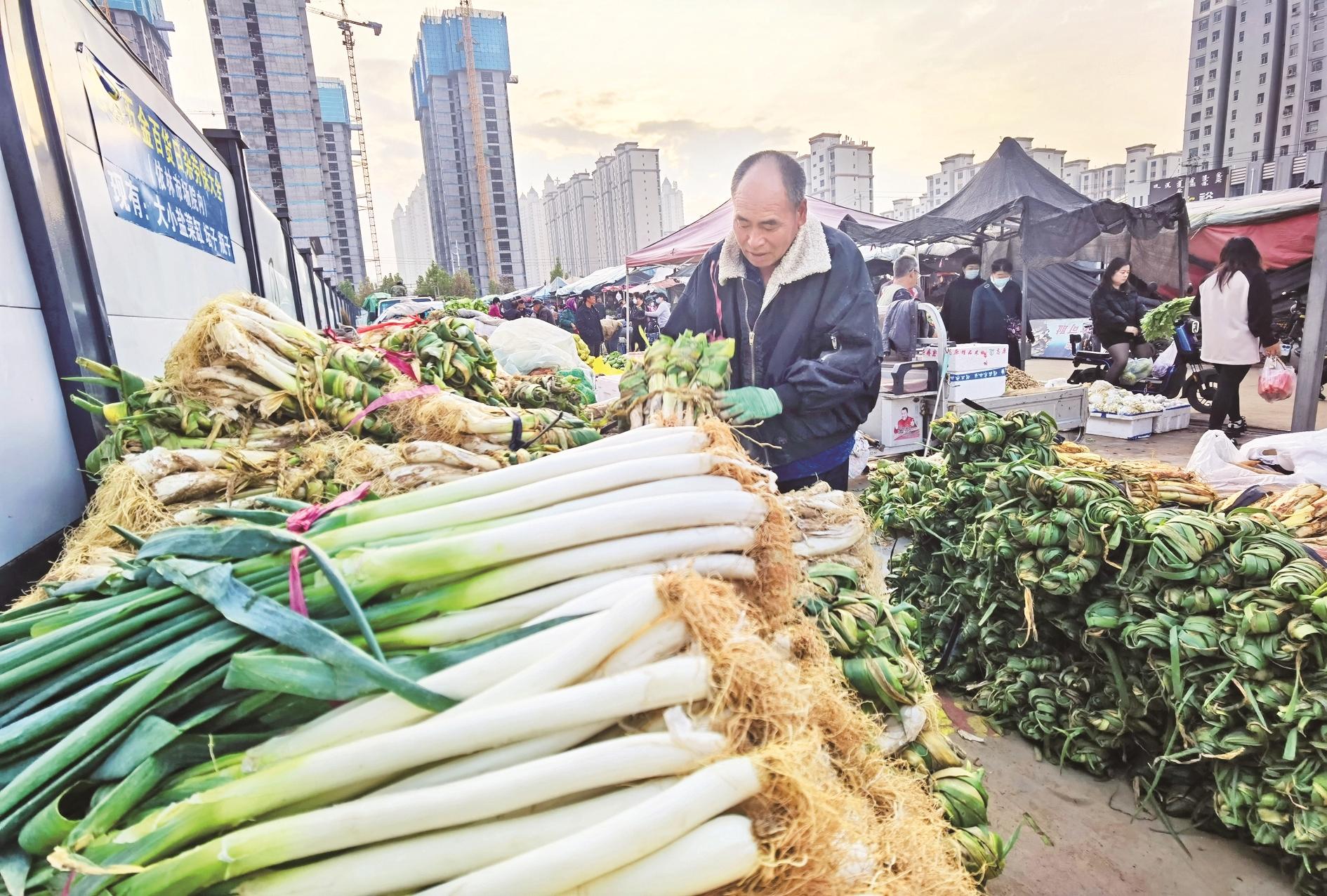 这些天,要说一大早哪儿最热闹,那非秋菜市场莫属。清晨6时许,南来北往的运菜车汇集到各集贸市场抢占有利位置,商贩们削剪白菜、码放土豆、捆扎大葱,让秋菜以最水灵的样子吸引人们的目光。