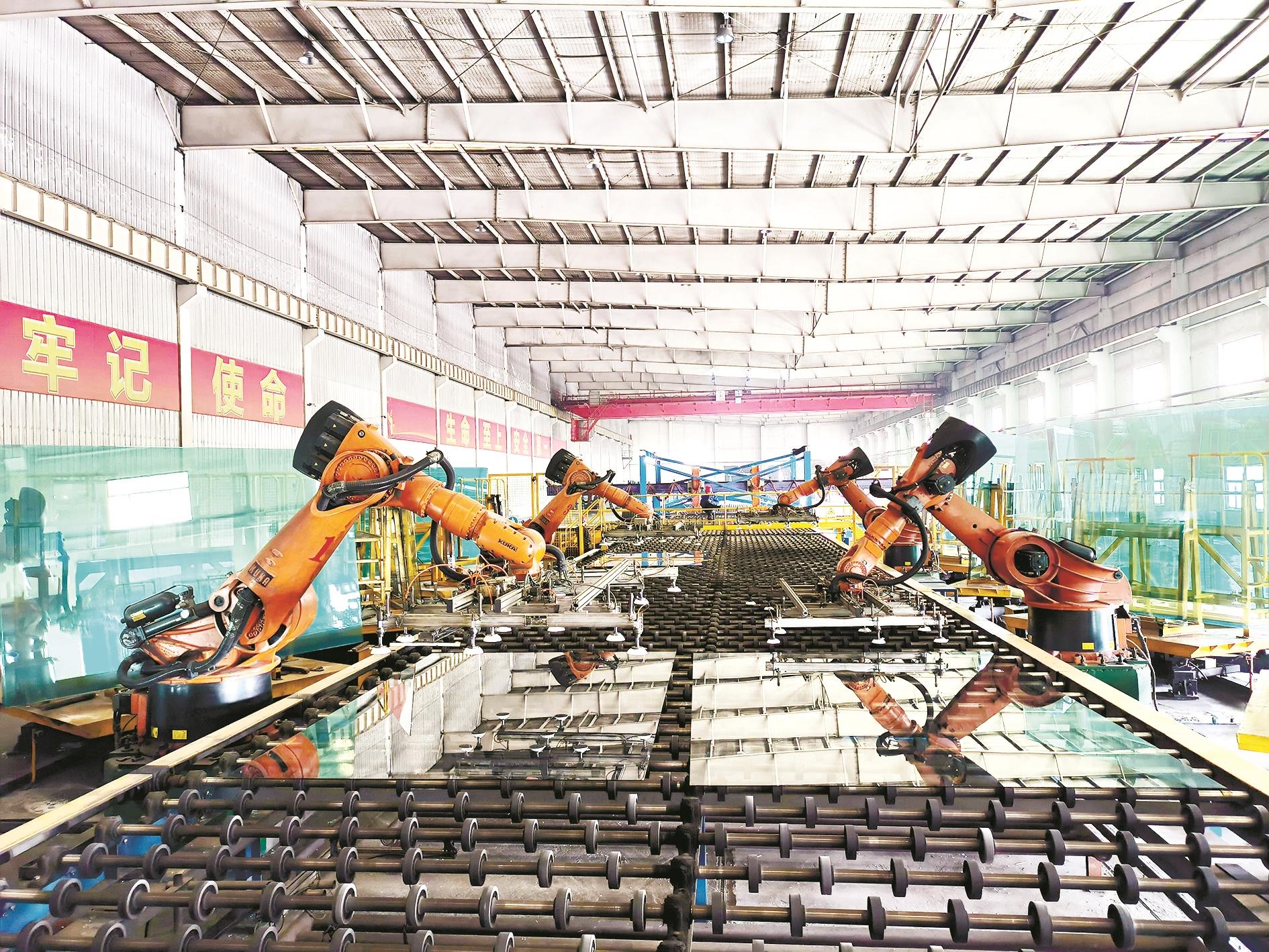 截至10月底,乌海中玻特种玻璃有限责任公司超额完成年度生产任务,产销率达121%,产销两旺。图为该公司浮法玻璃生产线。