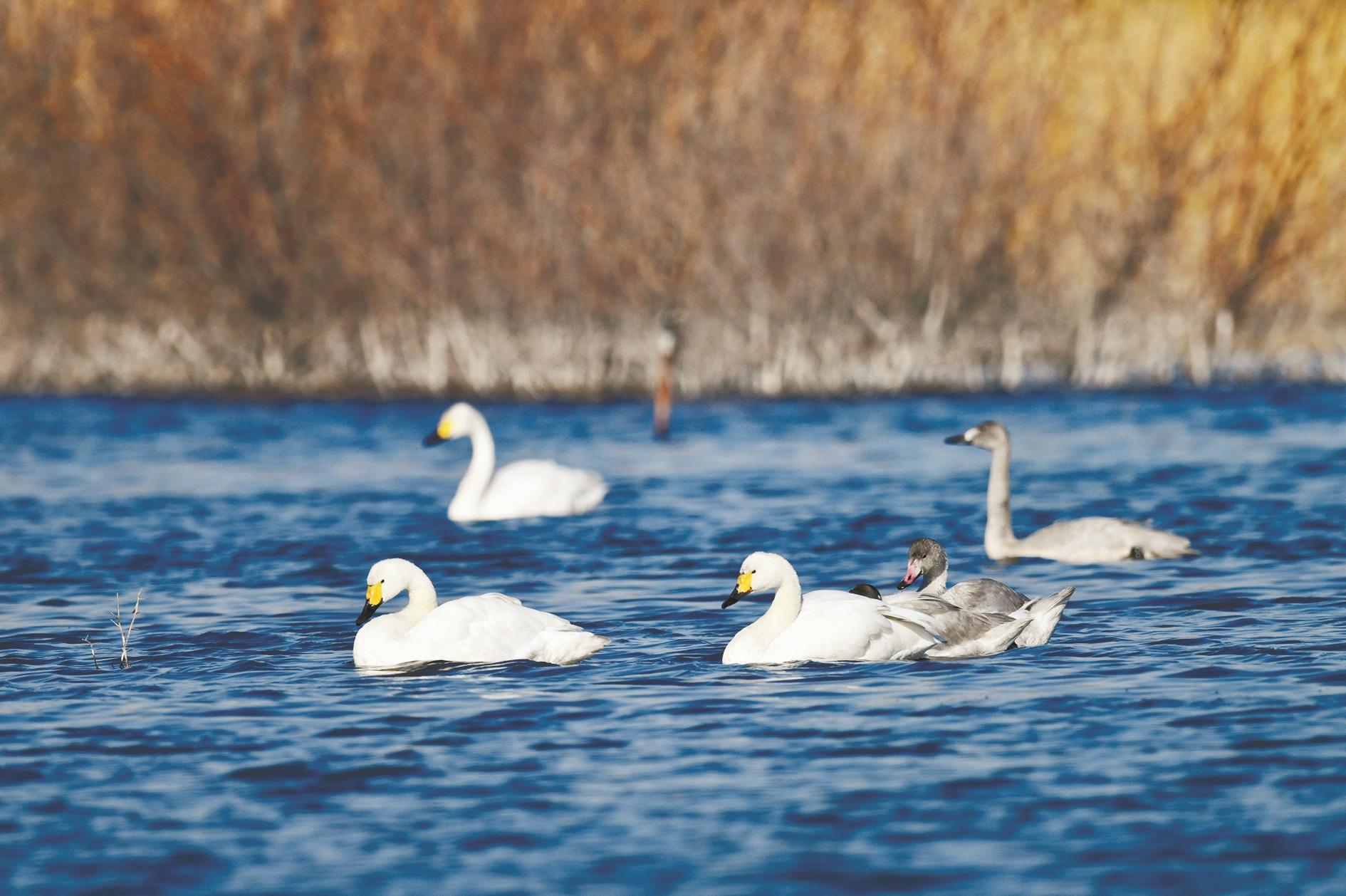 10月,冬候鸟“先头部队”早早抵达乌海,鸟儿在天空高唱、在水面乐游,它们是天与地之间跳动的音符,谱写着人与自然和谐共生的美妙乐章。
