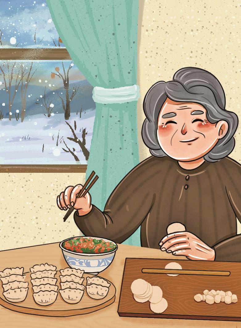 我忽然不想再继续提问我心里想的那些问题。一个节气,有什么节俗或者食俗又有什么关系?重要的是,我已经得到了一个非常好的答案。这个关于猪肉胡萝卜馅儿水饺的故事,忽然让我领悟到了千百年来节气中所蕴含的人文意义。