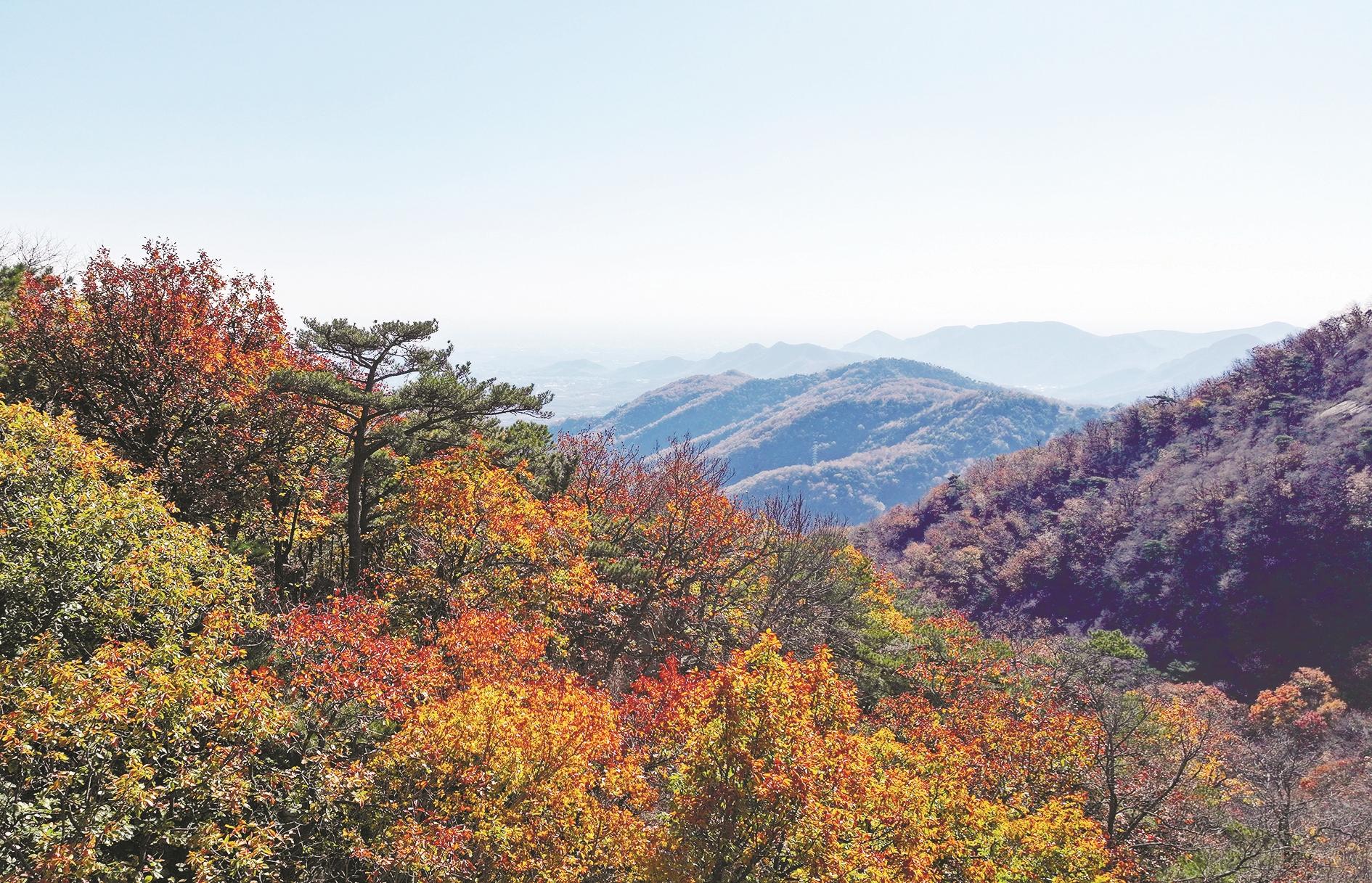 这是天津市蓟州区盘山景区的秋景(11月5日摄,无人机照片)。深秋时节,天津市蓟州区迎来了游赏秋叶的最佳时段。枫树、银杏、黄栌等树木在山峦起伏间相继“染色”,美不胜收。据了解,近年来,天津市蓟州区立足京津冀生态涵养发展区定位,通过守山、护水、增绿等举措,坚持走生态优先、绿色发展的道路。