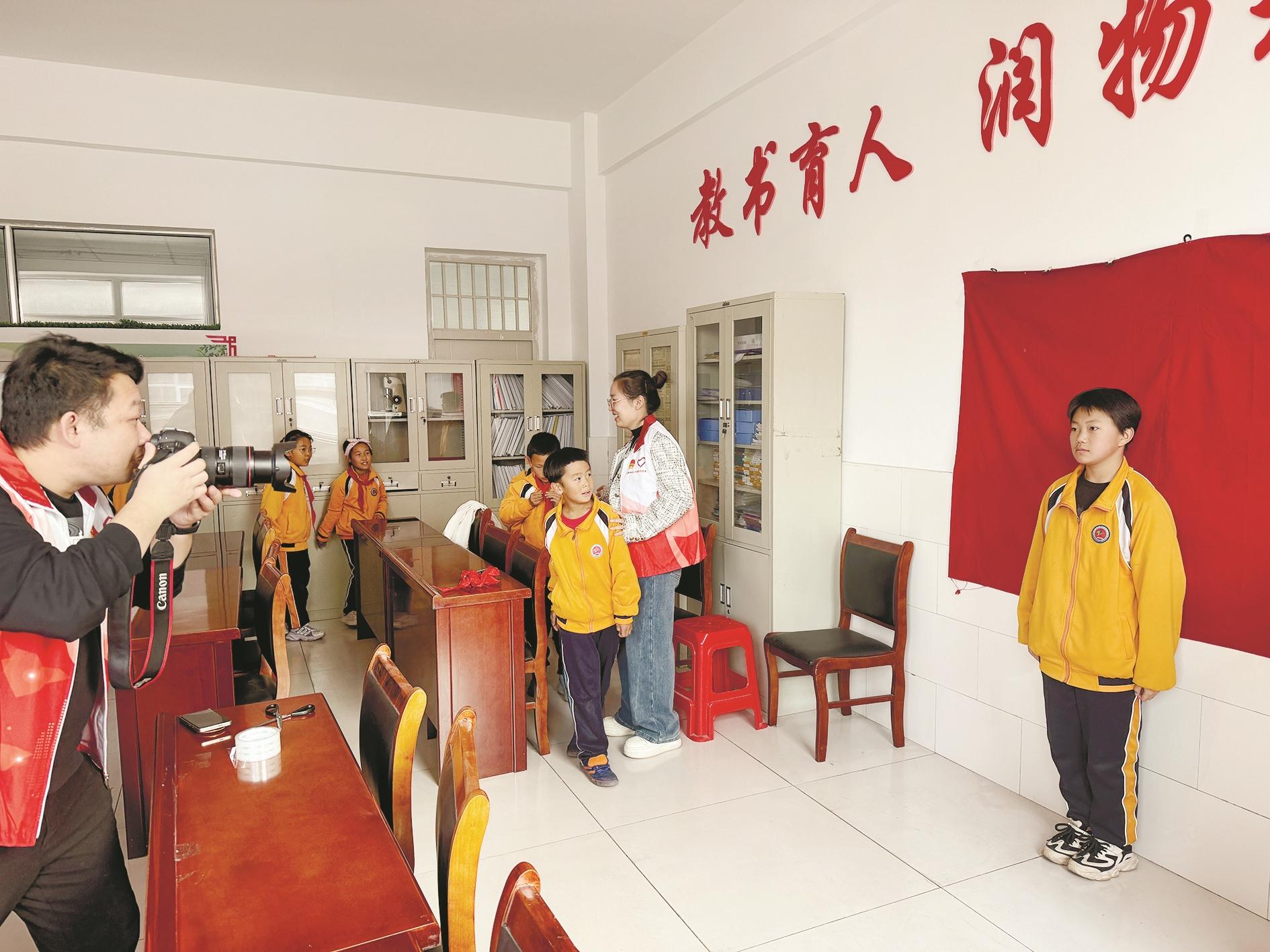 10月28日,内蒙古电力集团乌海供电公司团委(青工委)走进市第二十二中学开展“光影传情 定格温情”青年志愿服务活动,为基层一线工人及困难家庭的子女拍摄需要的证件照,传递社会的温暖。 (王媛 摄)