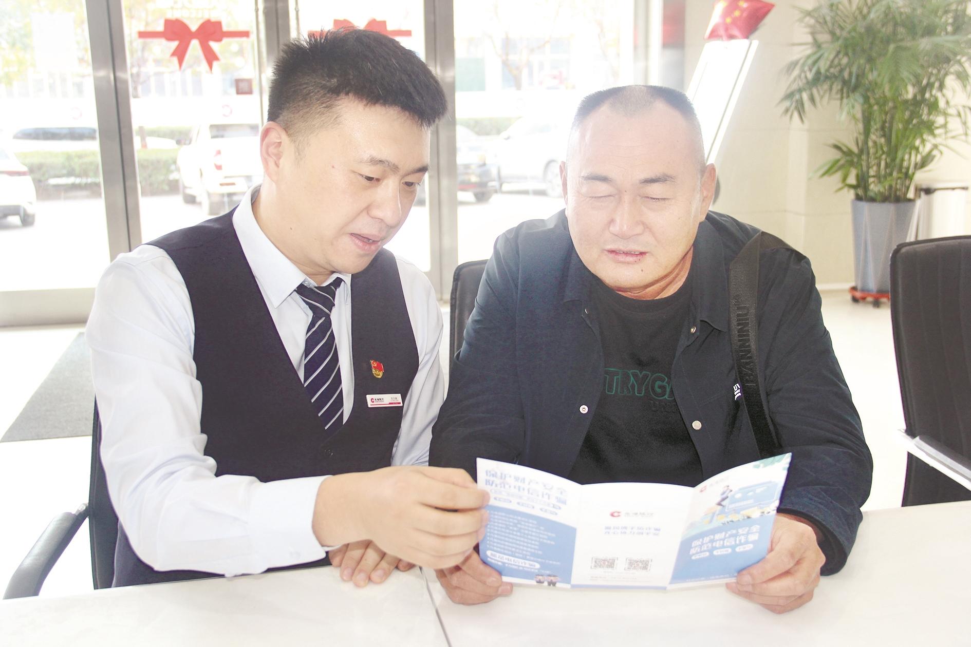 近日,乌海银行工作人员立足厅堂,向市民发放宣传资料,讲解金融惠民政策,普及金融知识。 (陈洋 摄)