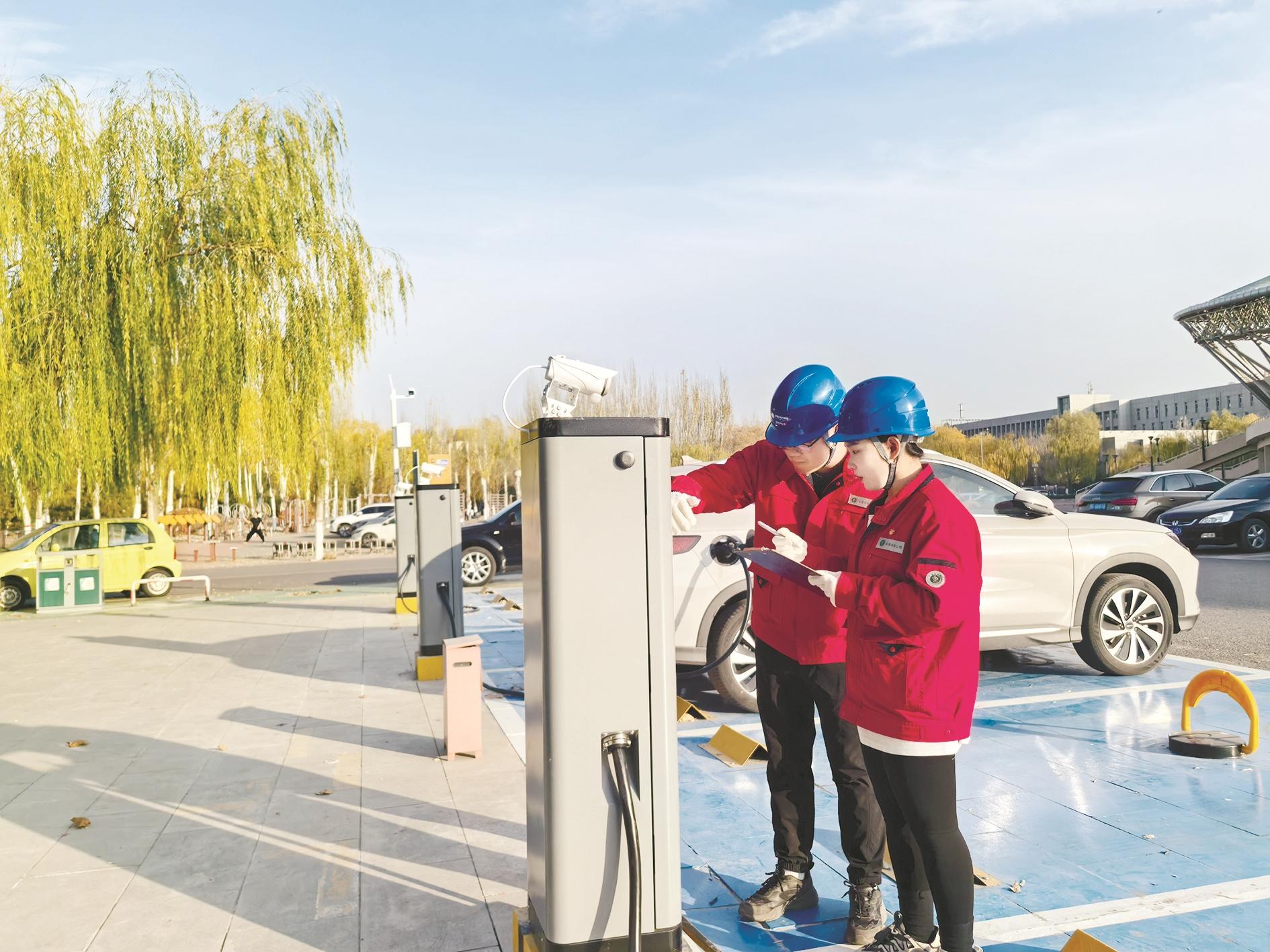 近日,内蒙古电力集团乌海滨河供电公司党员服务队和网格服务队开展了“新能源汽车绿色出行”充电桩变压器安全隐患排查工作,重点检查了充电桩变压器在高峰时段的电流、温度和负荷等关键性能指标,并及时记录和解决发现的潜在问题。同时,服务队队员还向市民和车主普及了新能源汽车的充电知识,增强公众的安全和环保意识。 (董明依 摄)