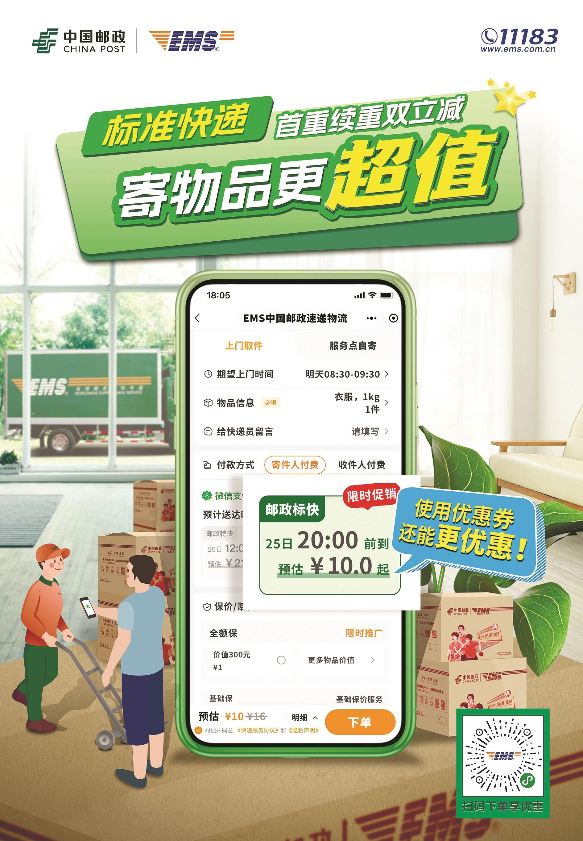 来邮政寄快递 均可上门取件!