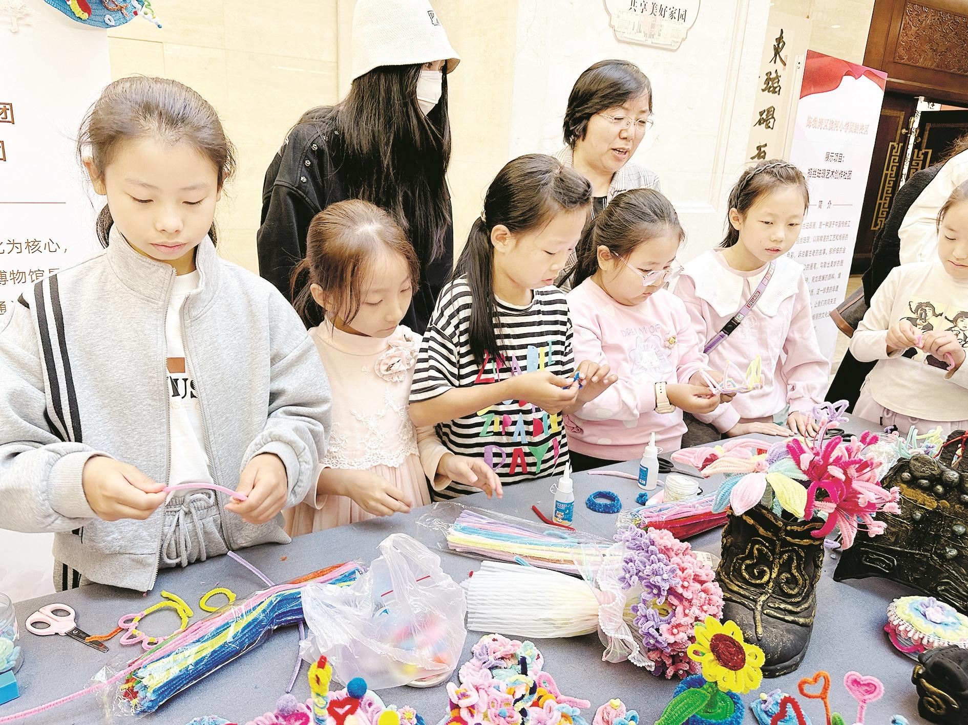 海勃湾区光明路小学学生学习制作手工。(郑彩虹 摄)
