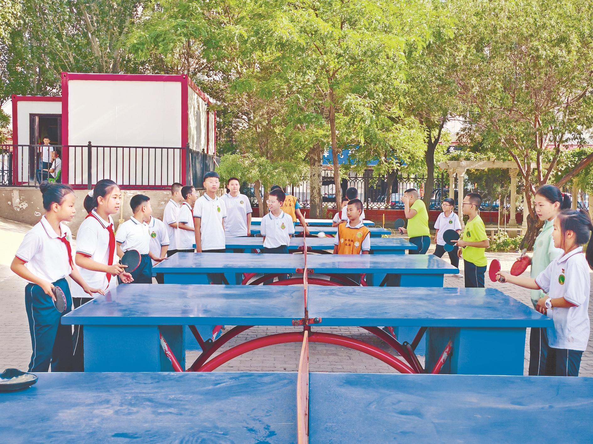 海勃湾区光明路小学大课间的“乒乓”竞技。(郑彩虹 摄)