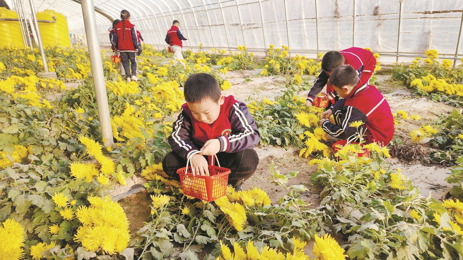 近日,海勃湾区滨河街道中河源社区邀请海勃湾区第三小学(五小龙游湾校区)的40余名师生参加“采菊制茶邀你来”活动,让学生们了解金丝皇菊、杭白菊的品种特点、生长环境和采摘技巧,同时感受传统农耕文化,提升他们的动手能力和团队协作能力。(姚远 摄)