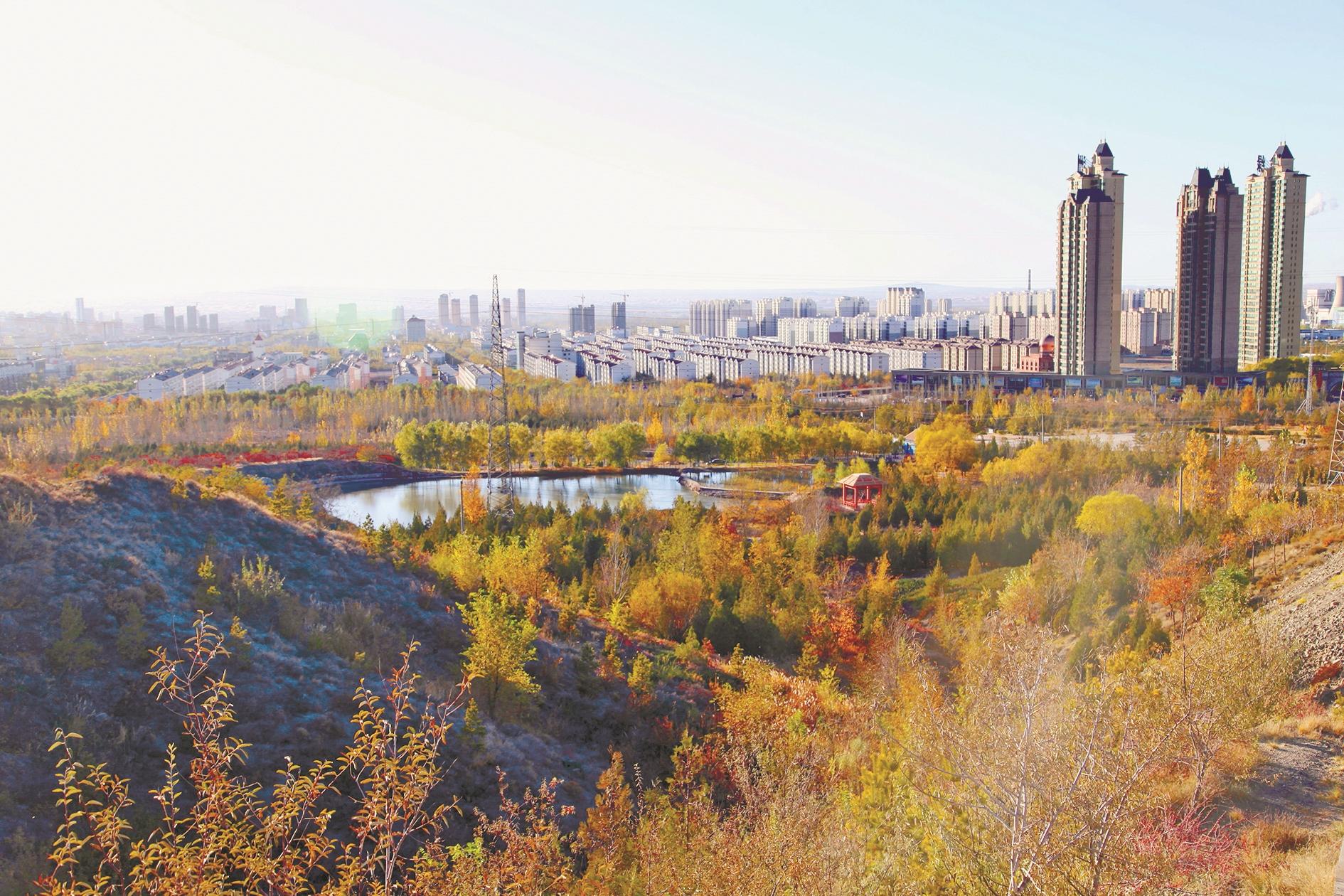 初冬时节,乌海大地层林尽染,风景如画。图为远眺海勃湾城区。(石历增 摄)