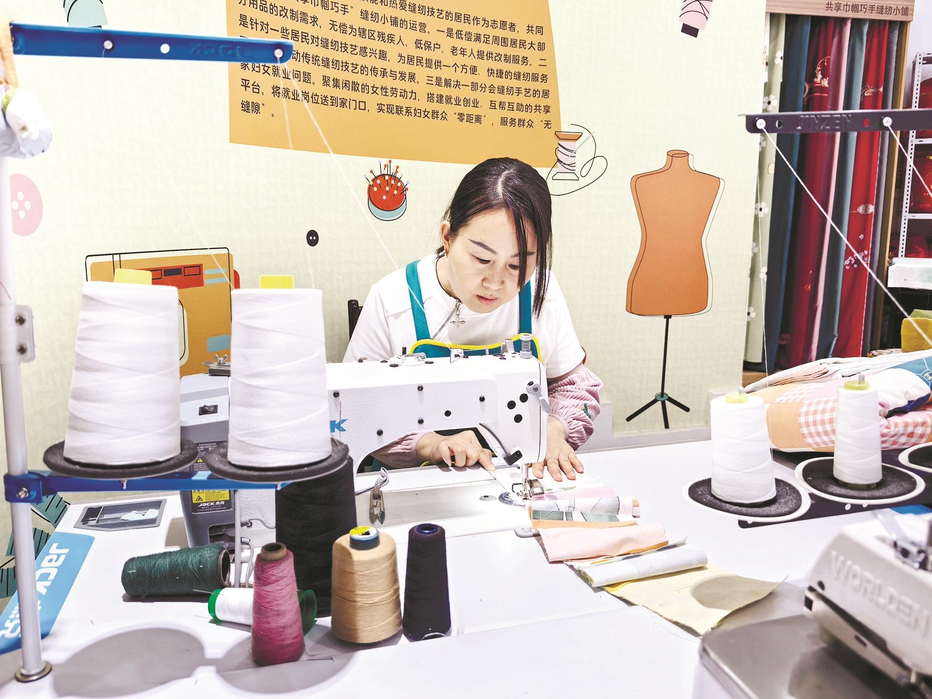 乌达区五虎山街道育红社区打造“共享巾帼巧手”缝纫小铺,为居民提供钉纽扣、裁剪、修补衣物等服务,满足居民对衣物改制的需求。同时,搭建缝纫实践就业平台,针对不同妇女群体分层分类开展培训,为居民尤其是生活困难妇女提供更多就业机会。(刘洋 摄)