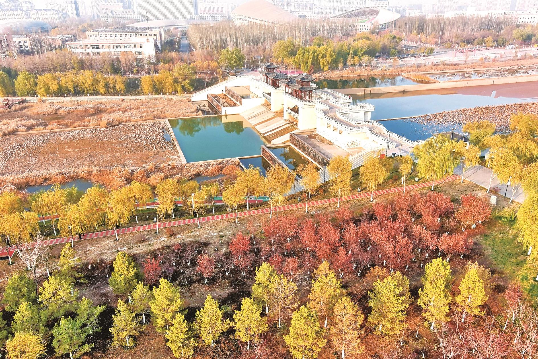 初冬时节,甘德尔河畔依旧风景如画。空中俯瞰,色彩斑斓的树木点缀着清澈的河水,宛如大地调色板,美不胜收。(王超 摄)