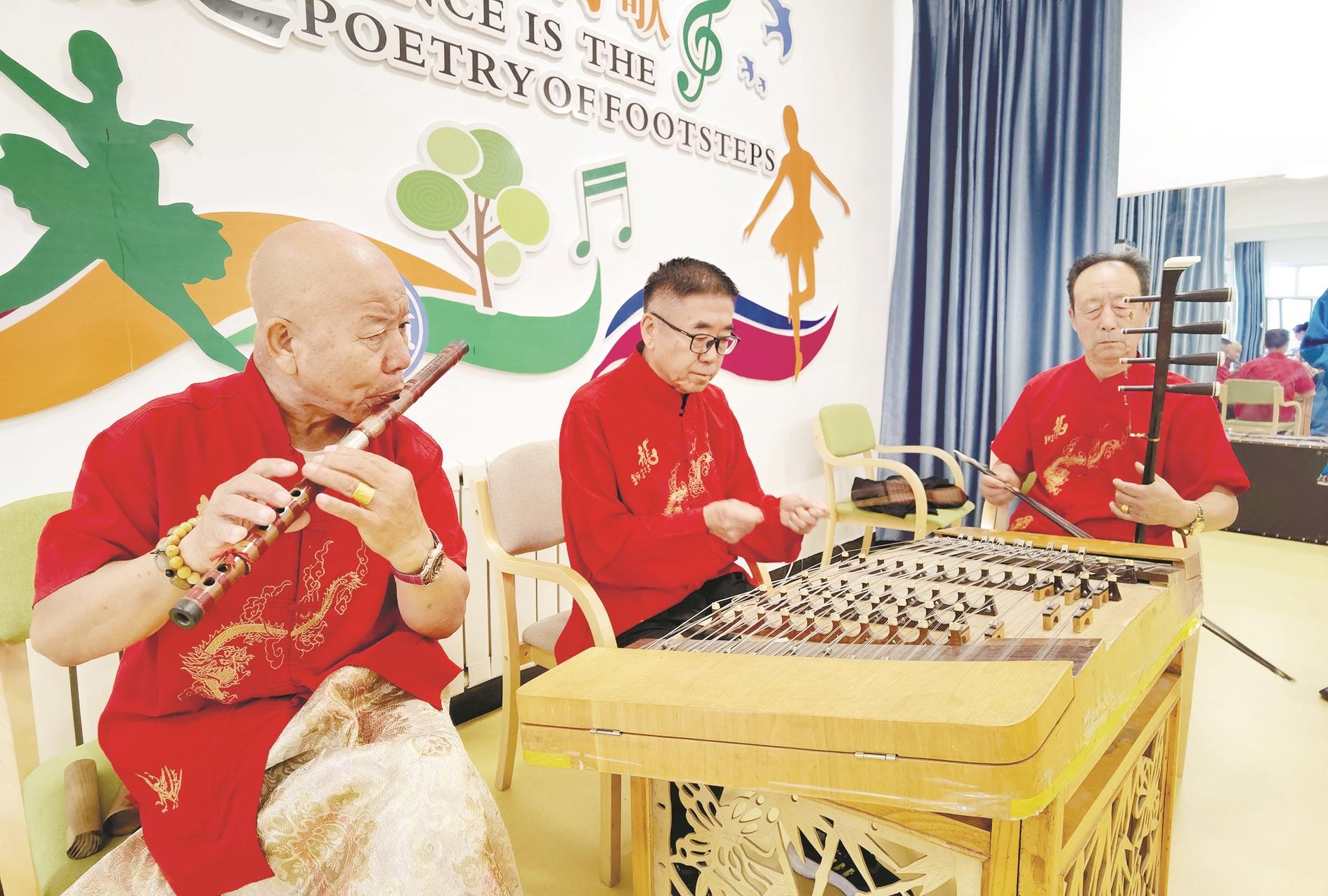 海勃湾区林荫街道搬迁安置区居民集中、老年人多,街道便以打造一刻钟社区生活圈为契机,紧贴老年人需求特点,成立了京剧、二人台、合唱等10余支业余文艺队伍,通过开展公益课程培训和形式多样的文艺活动,让老年人在街道的“幸福天地”里老有所学、老有所乐。林荫街道温馨社区活动室内,扬琴叮咚、锣鼓欢快,二人台爱好者齐聚一堂,歌唱幸福生活。二人台爱好者吉成奎说:“家中购置好的扬琴、二胡、四胡等乐器专门放在一个屋子里,妻子尹眼眉的演出服做了一身又一身。我们经常参加社区组织的文艺表演,有着一些志趣相投的好朋友,超幸福。”