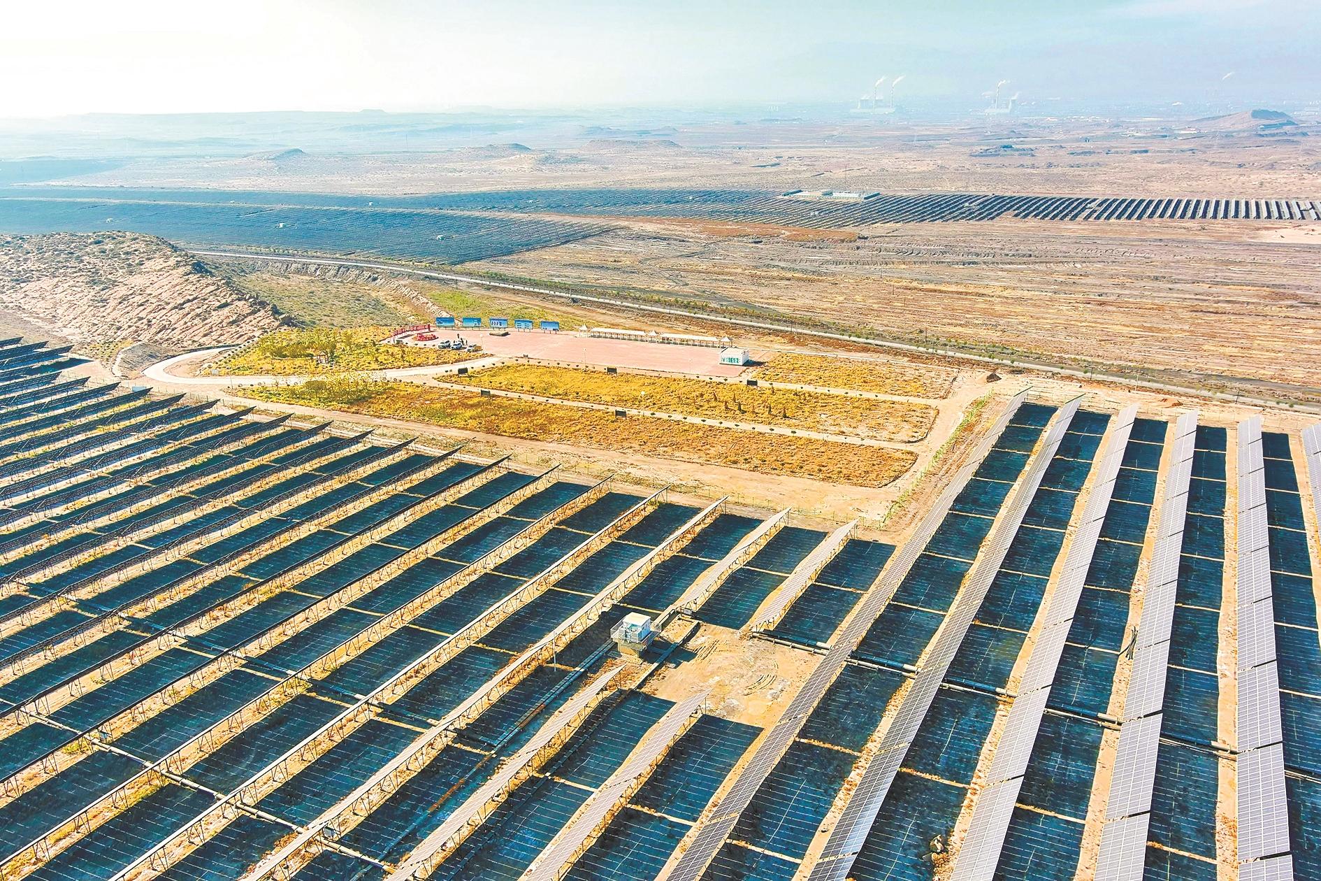 近年来,我市立足自然资源禀赋,引进企业将矿山生态治理与新能源开发相结合,利用老旧矿山地形、光照等优势发展光伏发电项目,实现资源开发和绿色发展高效衔接,旧矿区焕发出新的活力。图为海南区矿山治理项目,一排排光伏板向阳而列,形成一道独特的风景线。 (王超 摄)