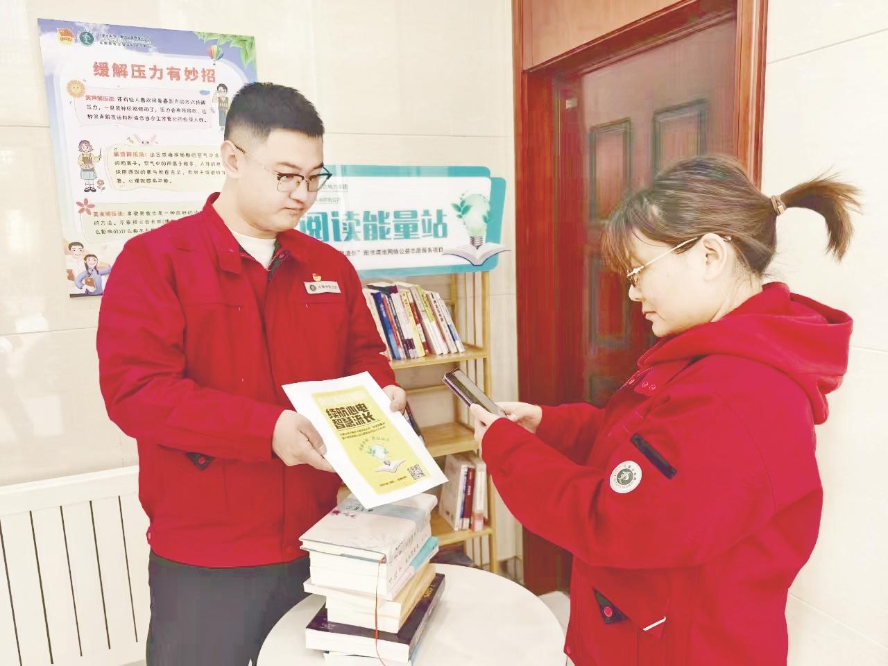 近日,内蒙古电力集团乌海供电公司客户服务中心、综合事务中心和负荷管理服务中心联合开展“书香共享 智慧生活”活动。用户只需通过微信专属小程序扫码即能快速借还书籍,真正实现“随时随地 畅享阅读”。 (赵桐可 摄)