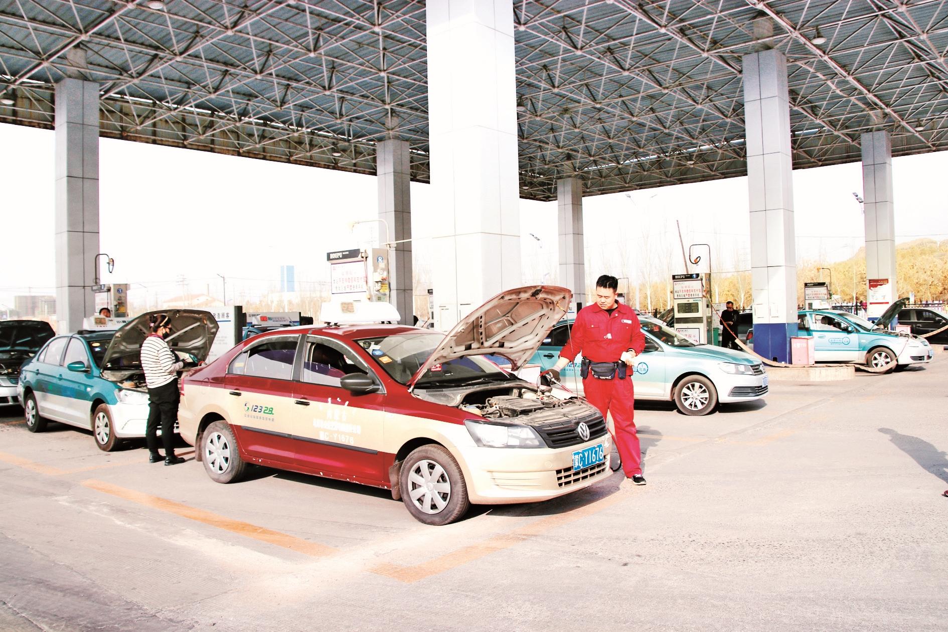 2019年,出租车排队加气。(赵荣 摄)