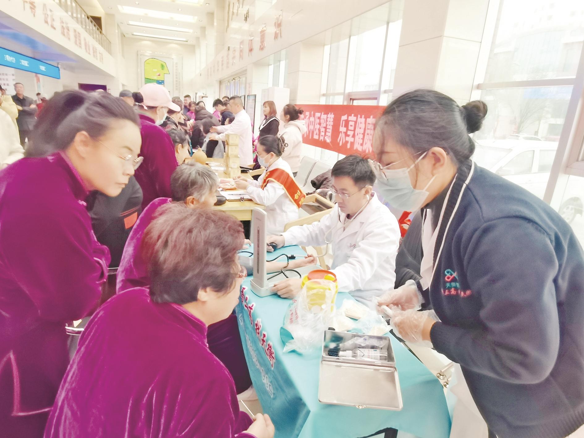 11月15日,拉僧仲街道华苑社区开展“中医集市‘出摊’,健康生活‘出圈’”便民集市活动。来自天衡医院和社区卫生服务中心的医护人员现场为居民测量血压和血糖,提供中医诊脉、体质辨识和健康咨询服务,并设置了中医推拿、穴位贴敷、艾灸体验的窗口,传播中医文化的同时,也增强了居民的健康观念和养生意识。 (鲁吟 摄)