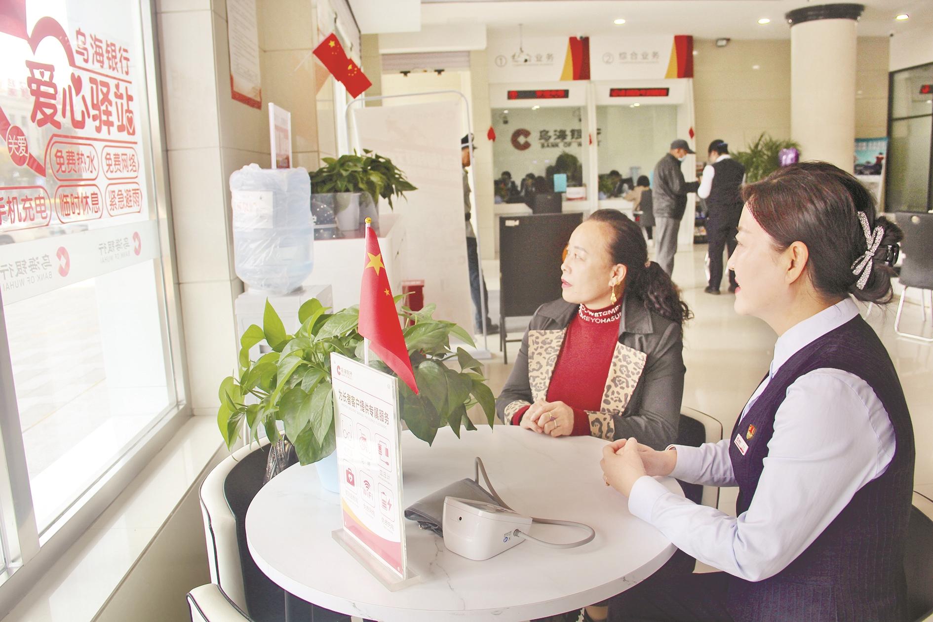 近日,乌海银行工作人员立足厅堂向市民宣传爱心驿站、发放防诈宣传资料,讲解电信诈骗案例,普及金融知识,共同守护居民钱袋子。 (陈洋 摄)
