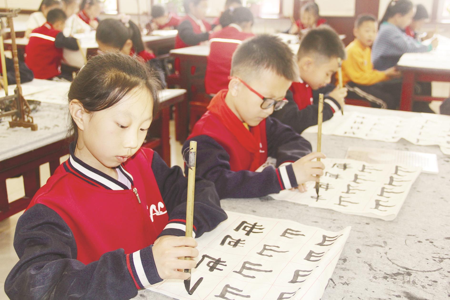 为了弘扬和传承中华优秀传统文化,普及书法知识,培养学生书写能力,乌达区胜利街小学组织书法进校园、书法大赛等活动。图为学生练习书法。 (陈洋 摄)
