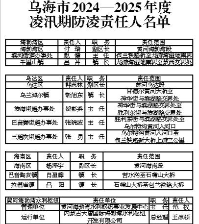 乌海市2024—2025年度 凌汛期防凌责任人名单