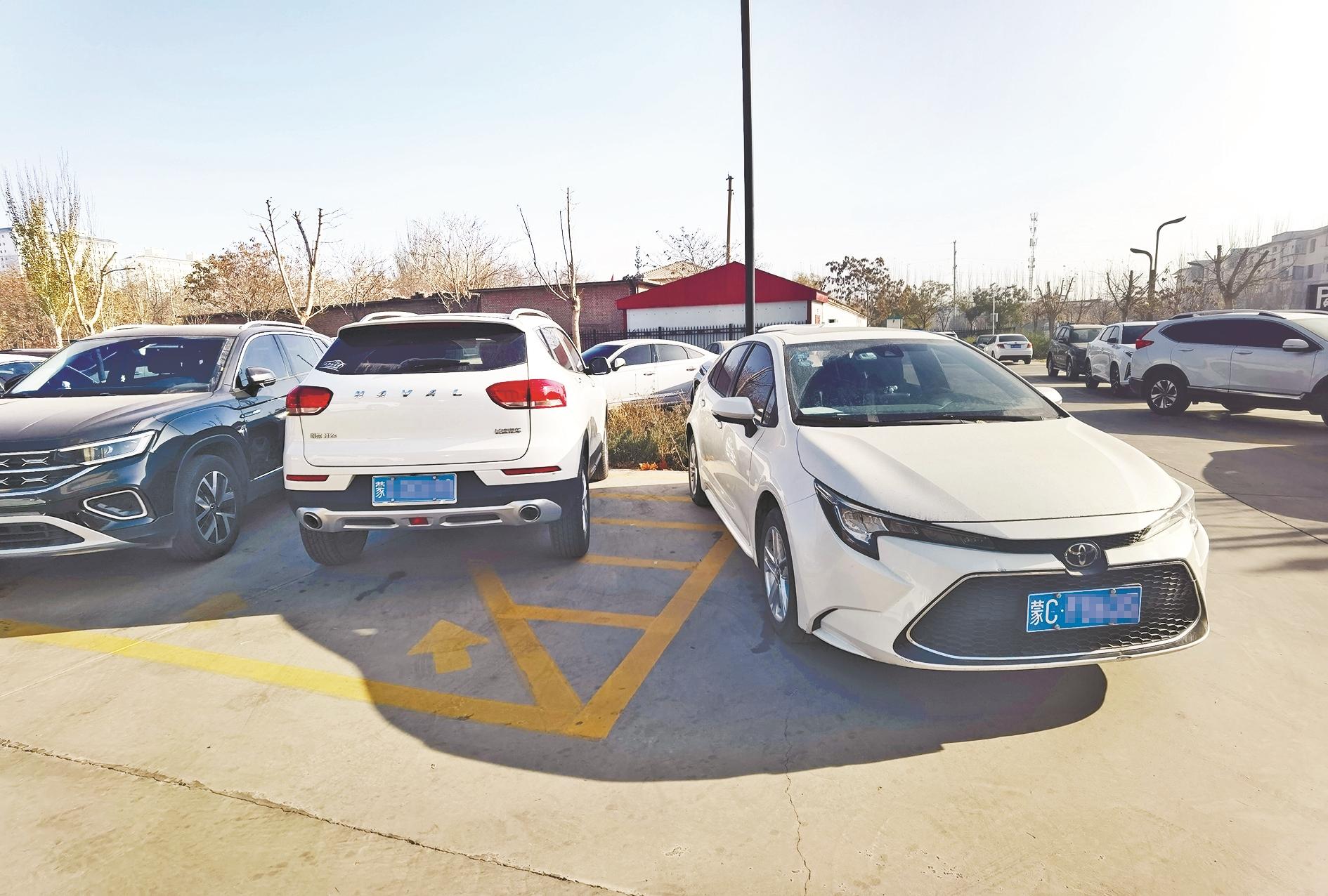 市民李先生介绍,他每天接送孩子时,都会将车停放在海勃湾区乌兰路与狮城街路口西北角的公共停车位,在这里停车的司机都默认两侧停车位停两排,中间没施划停车位的空间还能顺着停一排。但有些司机担心自己的车辆被堵,半个车身停在车位外。更有甚者,一车占两位,压线停。