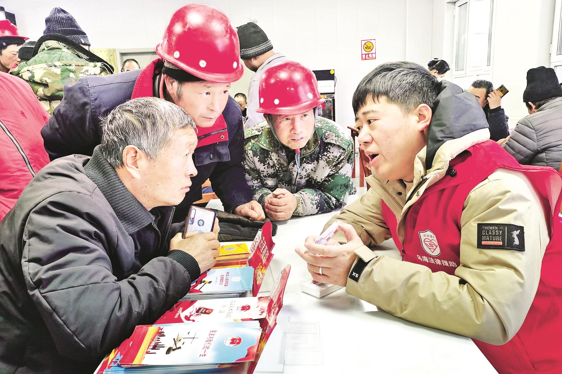 在第十一个国家宪法日到来之际,市法律援助中心工作人员到海勃湾南部零工市场开展了“爱在法援 精彩呈‘宪’”宪法宣传活动。工作人员向农民工宣传普及宪法、民法典、法律援助法、《保障农民工工资支付条例》等;律师志愿者耐心解答农民工关于劳动合同、工资支付、工伤赔偿等方面的法律问题,引导大家树牢宪法意识和法治观念,用法律手段维护自身合法权益。