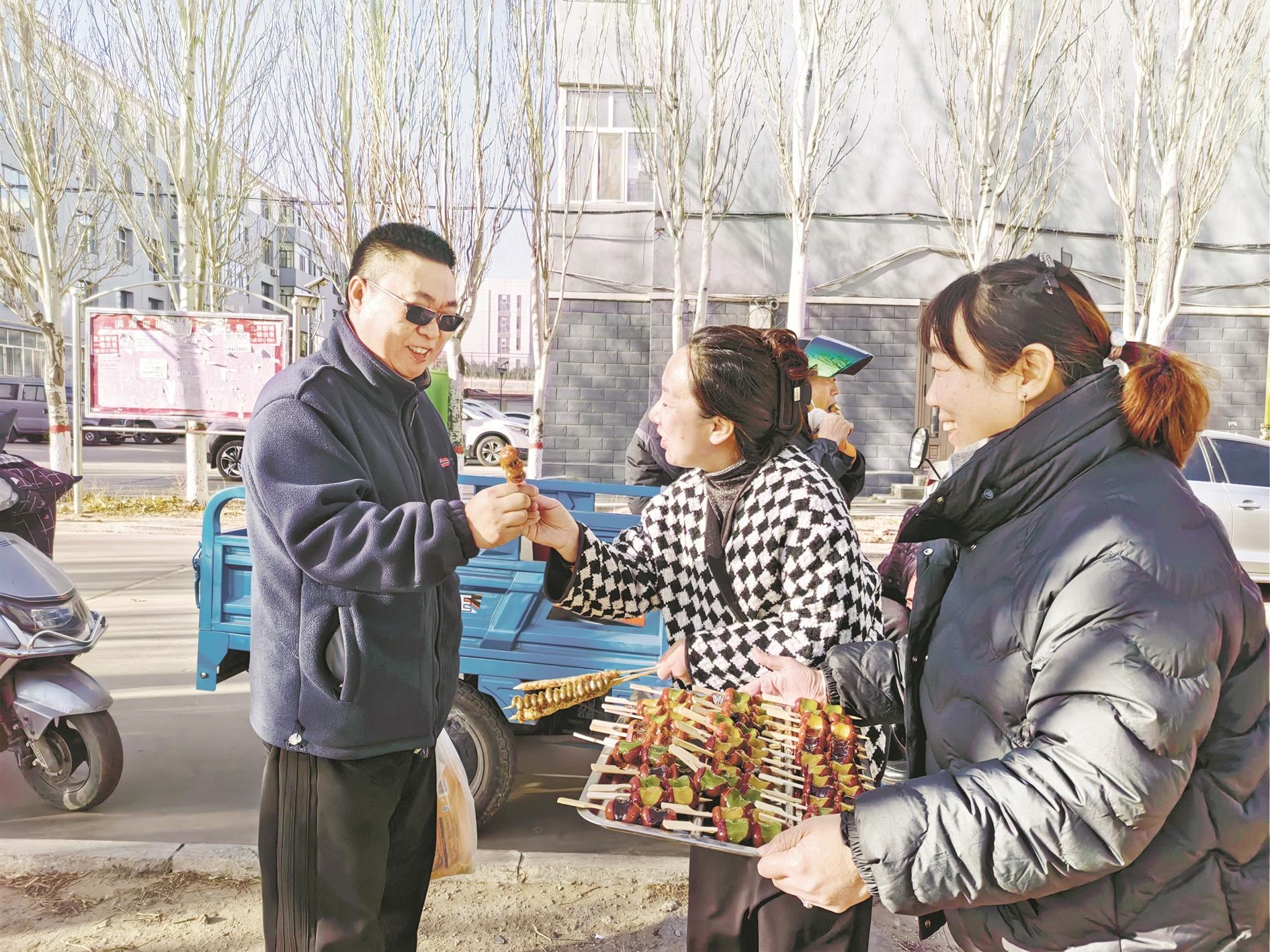 为促进和谐邻里关系,进一步丰富社区文化生活,近日,乌达区滨海街道胜利社区举办“串起温暖,品味甜蜜”冰糖葫芦制作及冬日配送活动。图为社区工作人员将制作好的糖葫芦送给辖区居民。