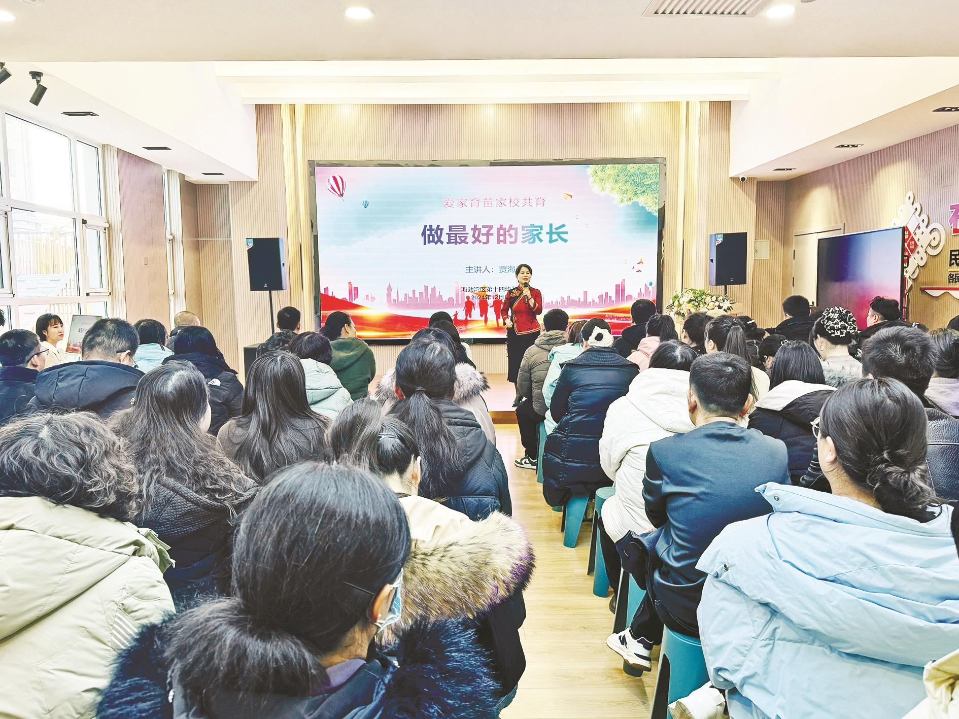 近日,海勃湾区第十四幼儿园组织开展家庭教育专题讲座。讲座老师以“做最好的家长”为题,以生动的案例、有趣的游戏,向家长们介绍了科学的家庭教育知识。 (段维娜 摄)