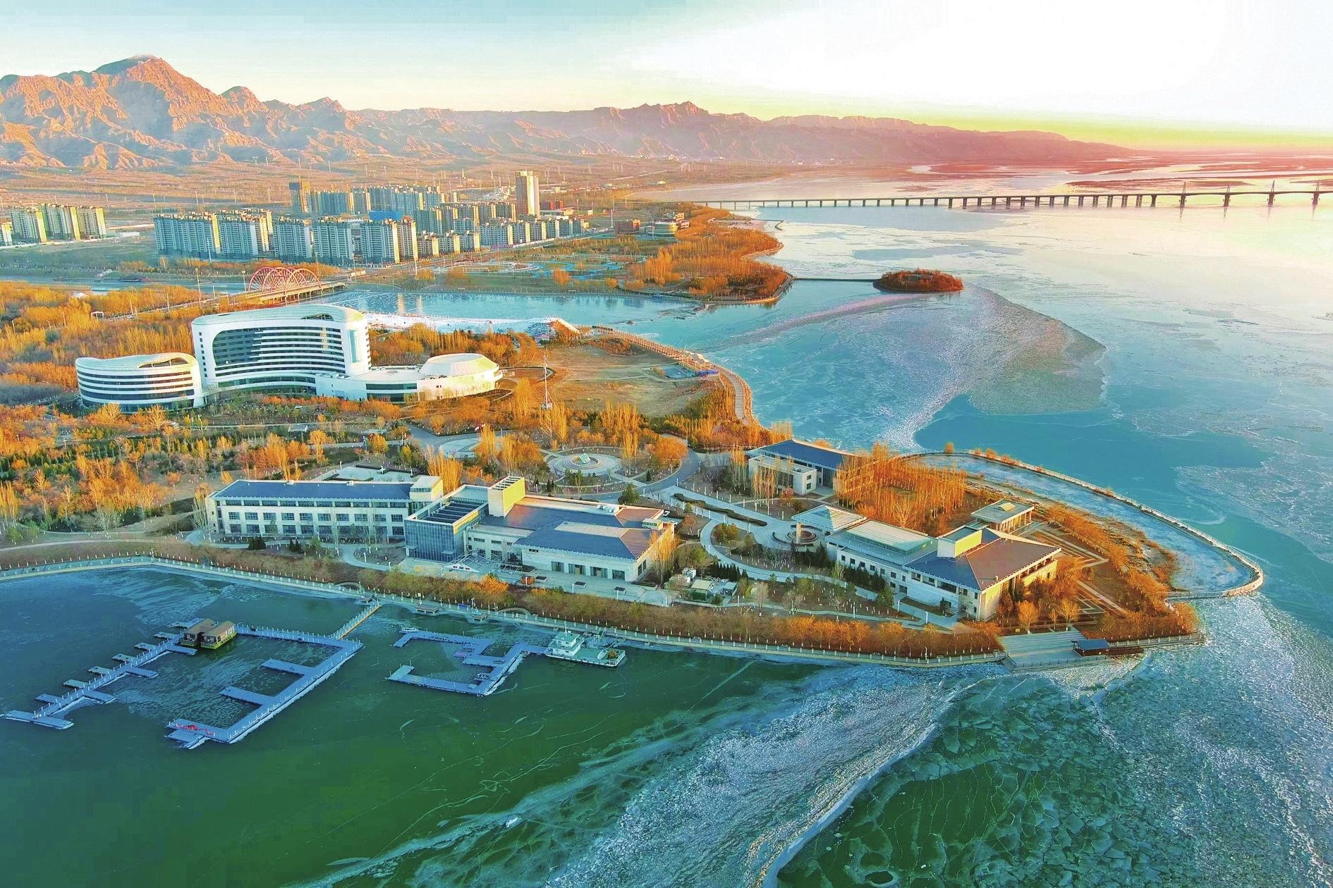 冬日时节,乌海湖开启“冰封”模式,湖面出现大面积结冰现象。远眺,“冰封”的湖面与城市相互映衬,在阳光下犹如一幅油画,展现出独特的美感。