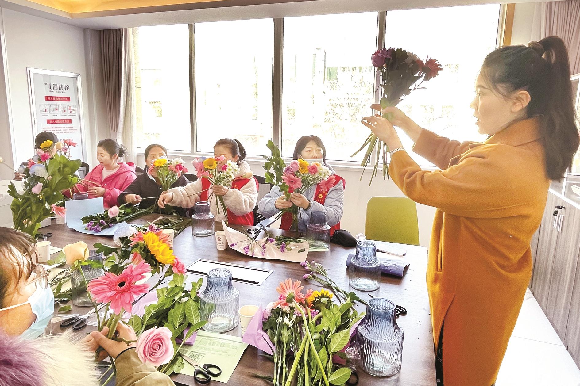 近日,海勃湾区滨河街道白楼社区联合爱心企业开展了以“花香四溢 邻里情长”为主题的插花活动。活动中,花艺老师讲解了颜色搭配、插花步骤等内容。居民们在花艺老师的指导下,制作出一个个美丽的插花作品。