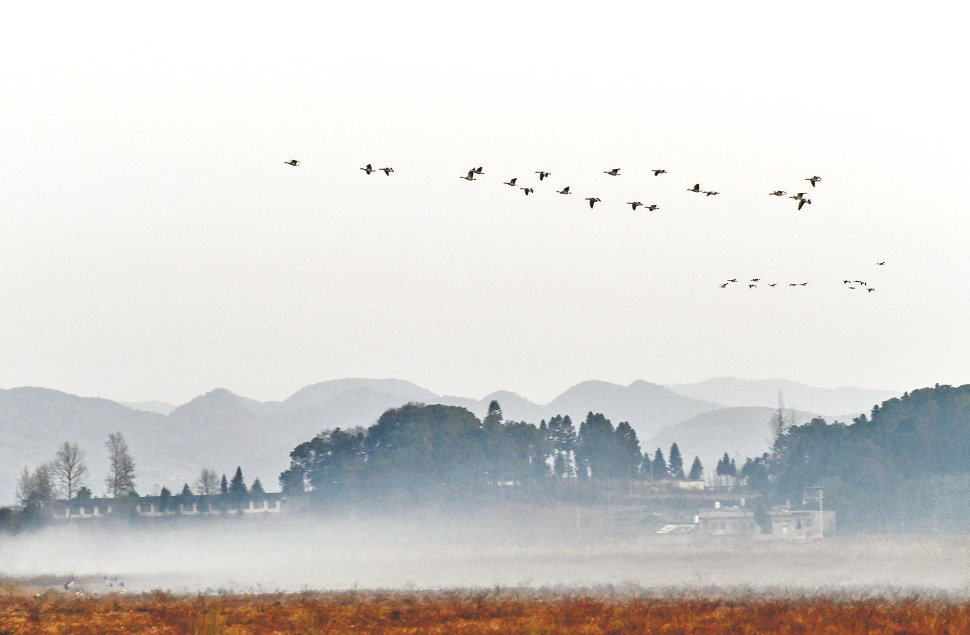 这是12月16日在贵州草海国家级自然保护区拍摄的越冬候鸟。地处贵州省毕节市威宁县的草海国家级自然保护区是一个完整、典型的高原湿地生态系统,是国家一级保护动物黑颈鹤的主要越冬地之一。近年来,当地加大对草海生态系统修复力度和巡护力度,黑颈鹤数量逐年增加。目前,前来草海越冬的黑颈鹤已达2500余只,加上灰鹤、斑头雁、赤麻鸭等,鸟类总数将达10万只,呈现万鸟翔集的生态景象。新华社记者 杨文斌 摄