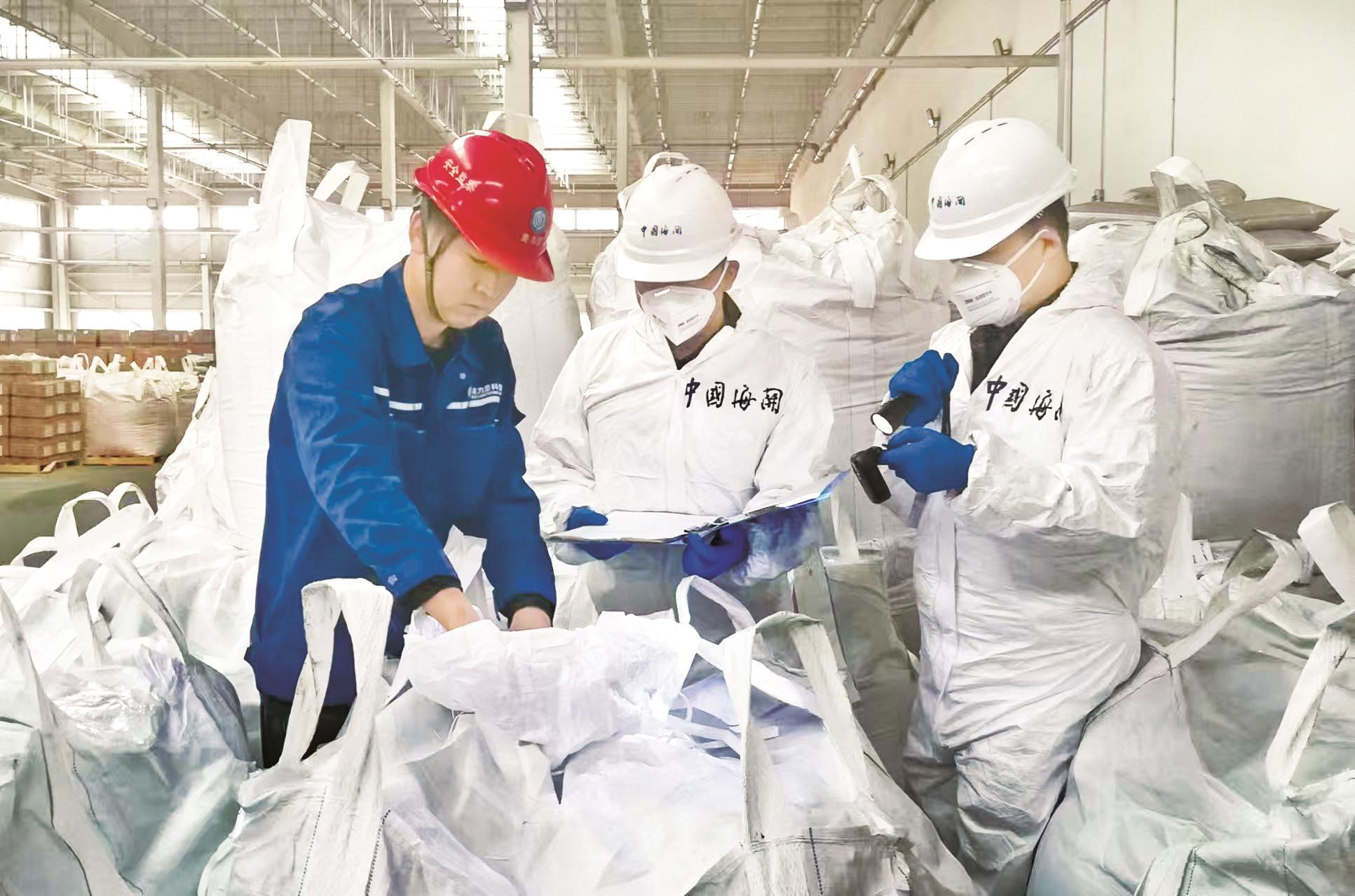 今年,为提高我市危化产品出口效率,乌海海关结合区域化工产业集群实际情况,为企业出口产品量身定制监管方案,指导企业规范仓储、灌装作业流程,完善安全生产管理制度,实现“一企一品一案”精准管理,助力更多“乌海制造”走向世界。图为近日,乌海海关深入企业进行属地查验。