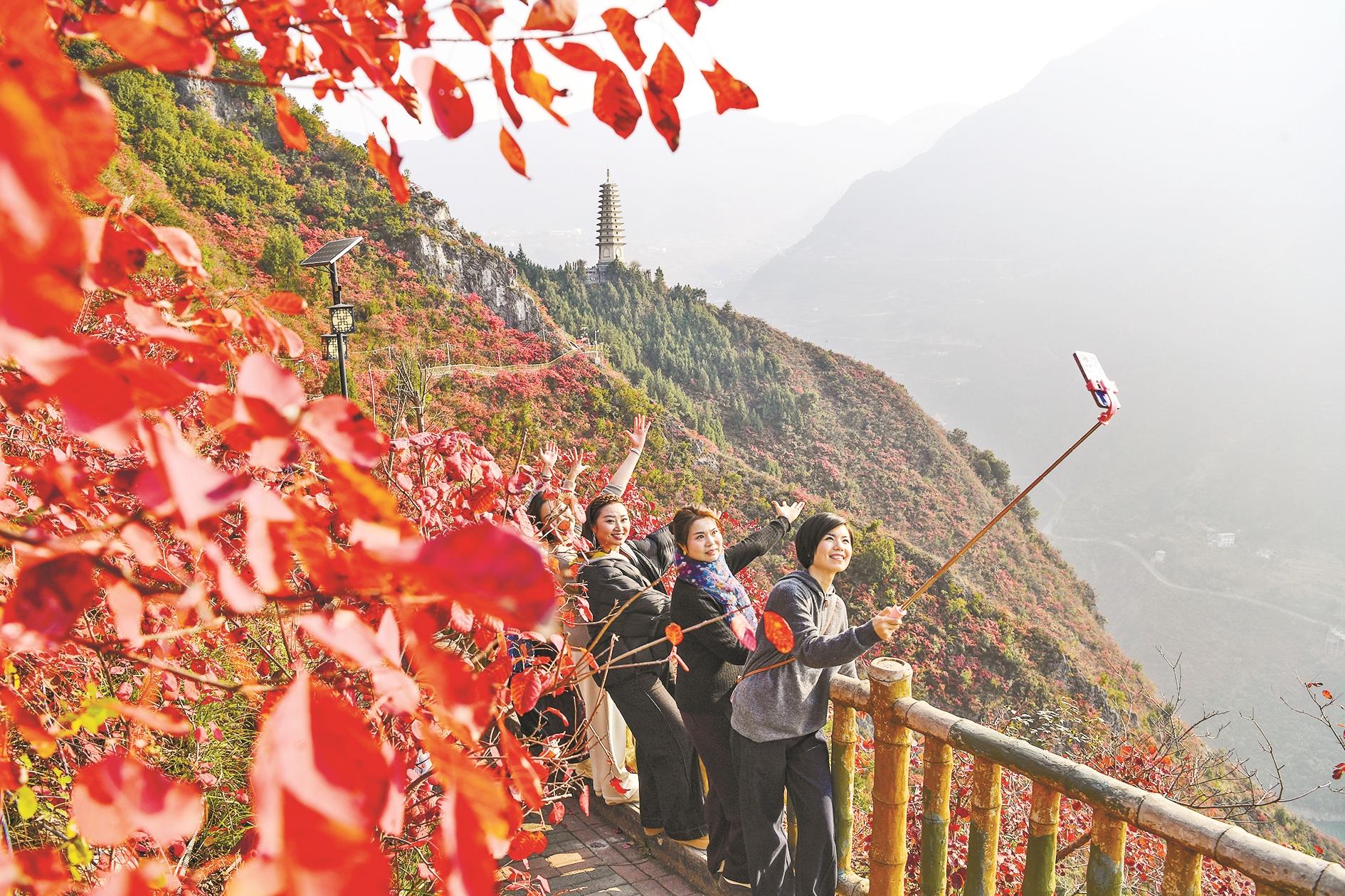 冬日时节,位于重庆市巫山县境内的长江巫峡一带进入红叶最佳观赏期,山水红叶交相辉映,绘就了如诗如画的三峡美景,吸引众多游客前来观赏、游览。近年来,巫山县结合“两岸青山·千里林带”建设总体方案,大规模栽植黄栌、枫香、乌桕、三角枫等红叶景观树种,持续打造三峡红叶景观带。同时,当地以红叶为媒,通过举办巫山红叶节等举措,不断提升巫山红叶的观赏性和美誉度,有力助推文旅产业发展。