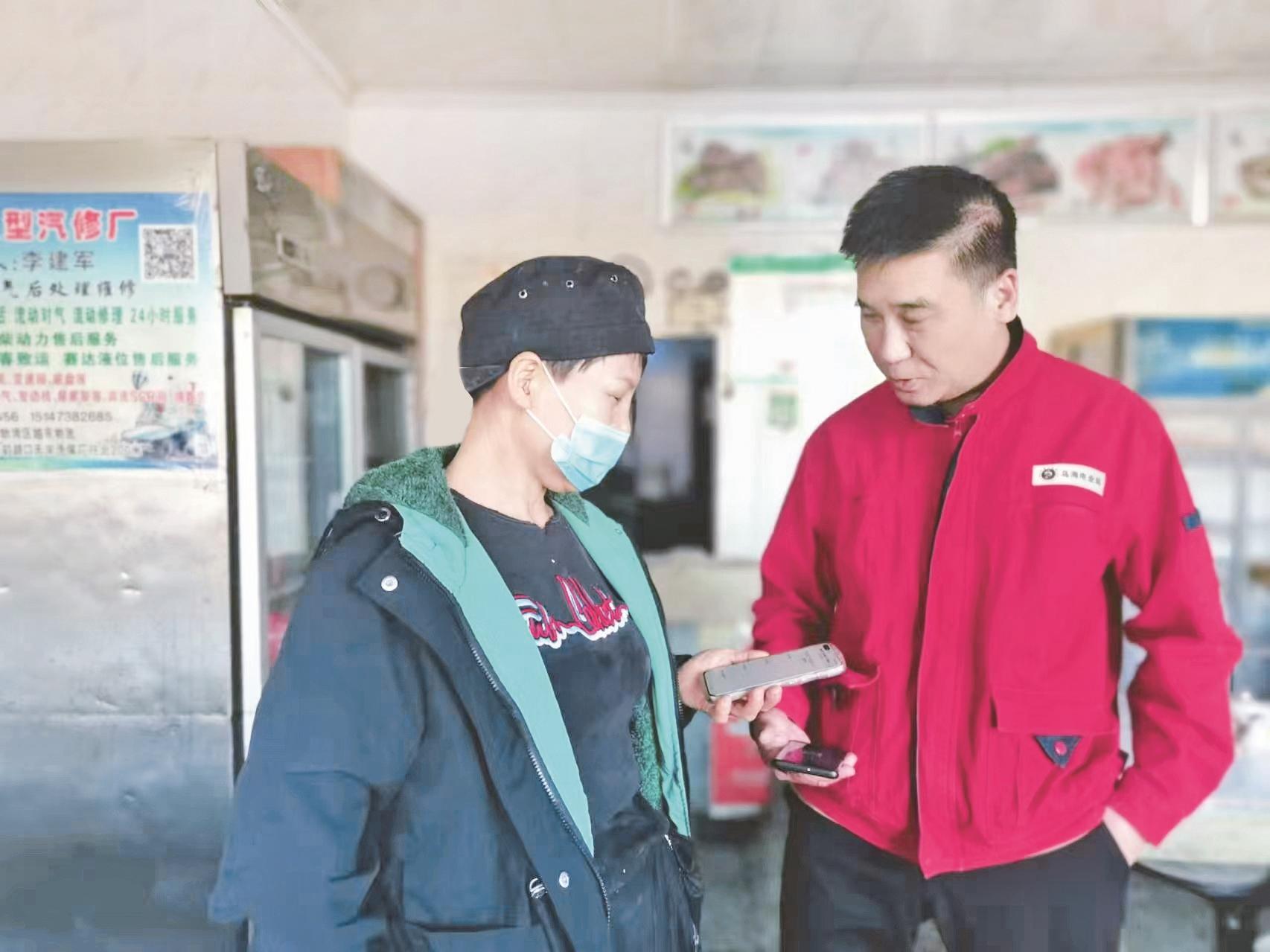 内蒙古电力集团乌海海勃湾供电公司秉承“人民电业为人民”的服务宗旨,持续优化营商环境,客户只需在线上平台提交申请,即可享受全程电子化的便捷服务,大大节省了时间和成本。图为近日,工作人员在商铺宣传线上办理用电业务知识。(范露丹 董志鹏 摄)
