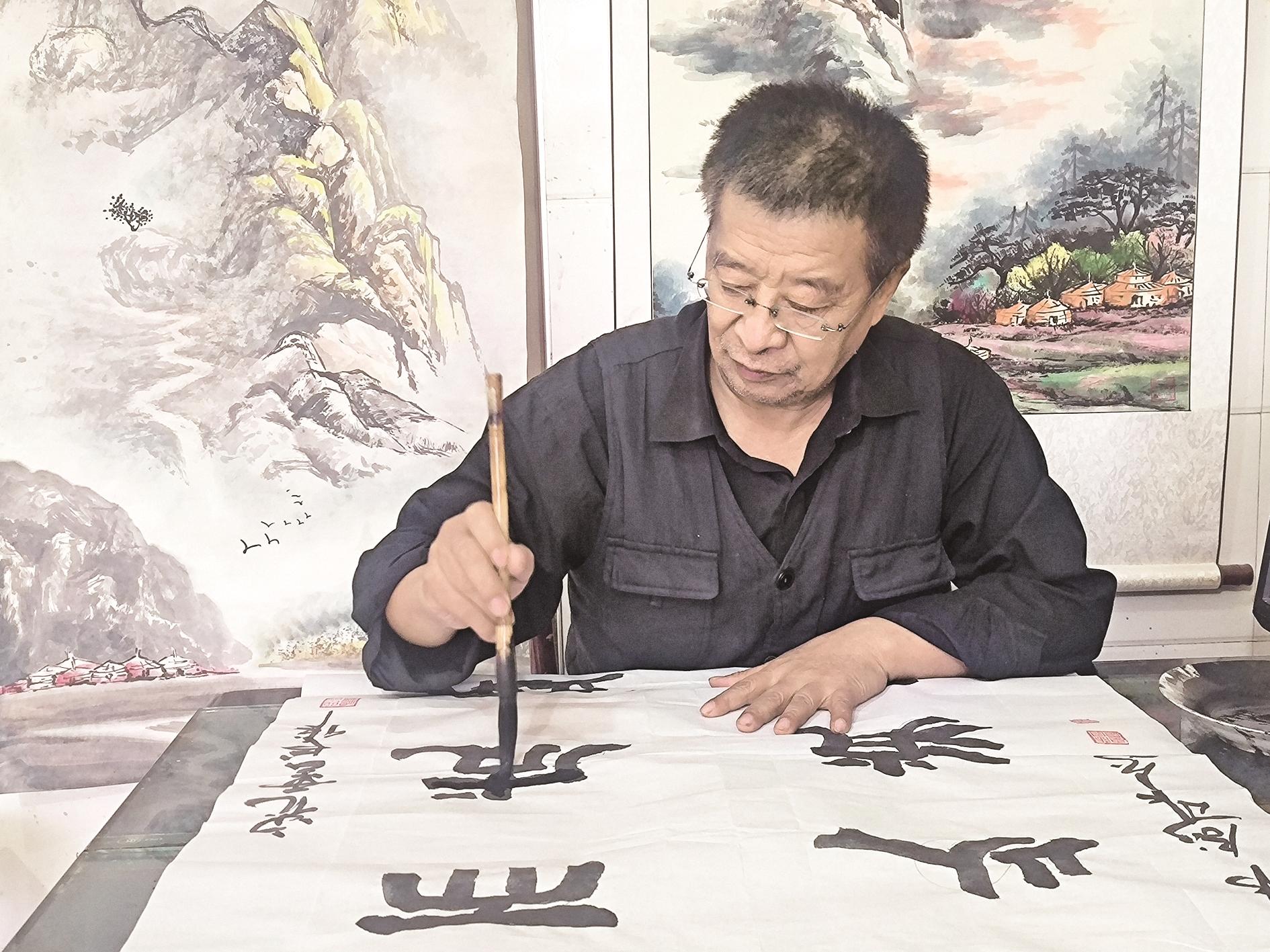 张宪云自幼喜爱绘画,初中时,开始跟随老师学书法。“正所谓‘书画同源’,书法中的线条、中锋用笔等方面也有助于绘画创作。”他说。此后几十年,张宪云坚持临帖创作,书法已成为他生活中重要的一部分。他主攻隶书,兼习行书。来到乌海后,浓厚的书法创作氛围深深地感染着他,他日常观看书法展览,与书友们交流,书法创作水平不断提升。他认为练好书法需要坚持,要有执行力。