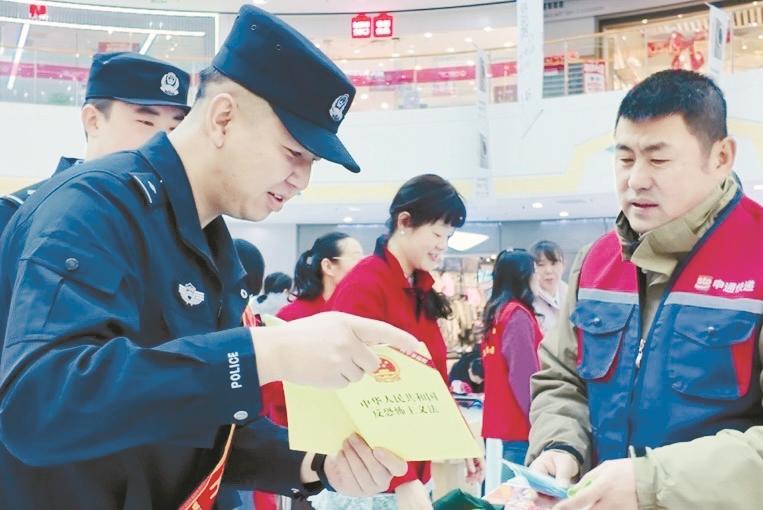 12月24日,市公安局反恐怖和特巡警支队在乌海万达广场开展2024年反恐宣传教育周系列活动,在全市营造浓厚的反恐宣传氛围。图为民警在乌海万达广场开展反恐宣传教育活动。(张舒怡 摄)