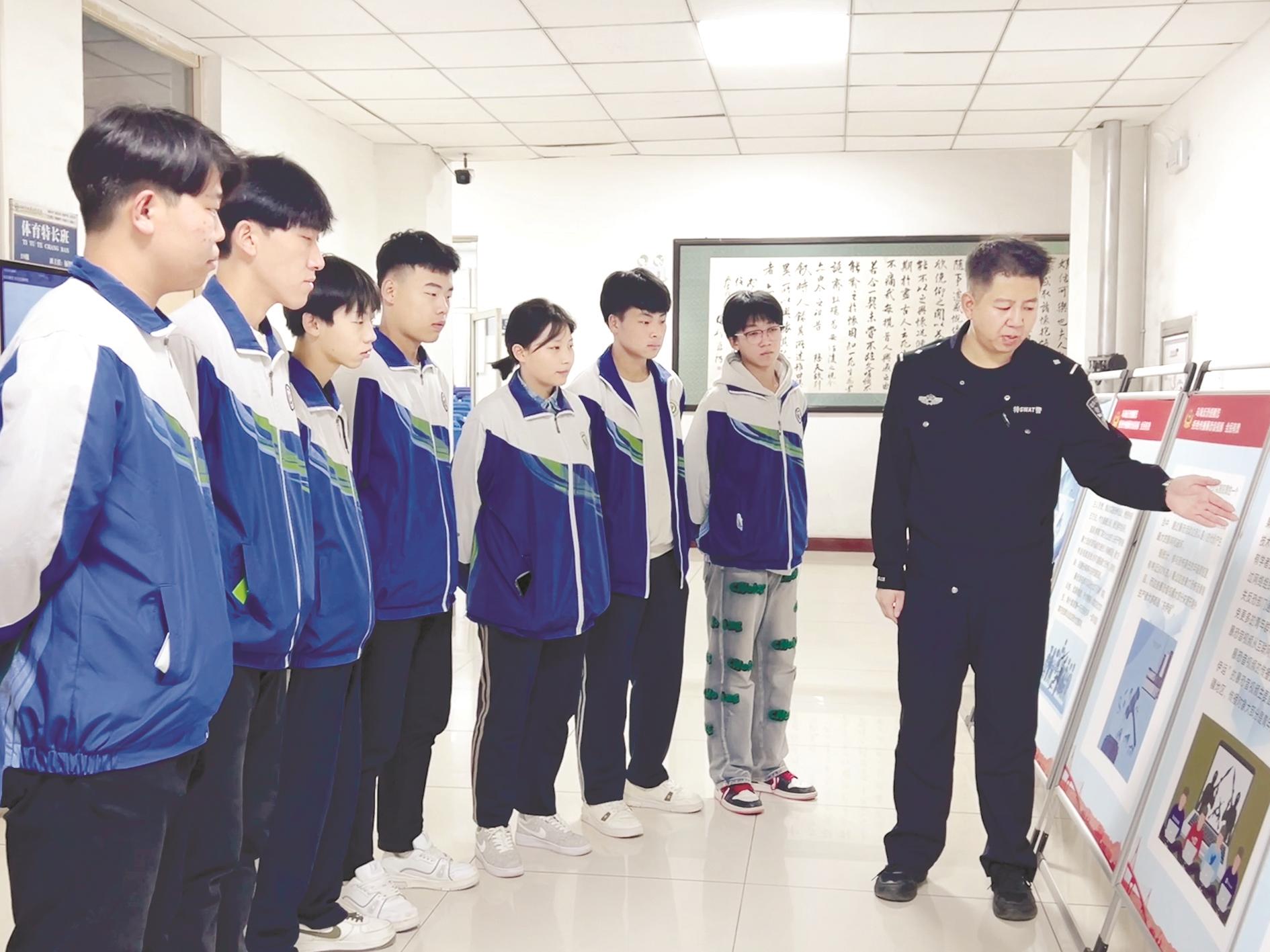12月26日,市公安局民警到乌海市职业技术学校开展反恐宣传,以提升学生反恐防暴意识,增强应对突发情况的能力,为校园安全筑起一道坚实防线。图为民警带领学生参观反恐宣传展板并耐心讲解展板内容,帮助他们深入了解反恐相关知识。