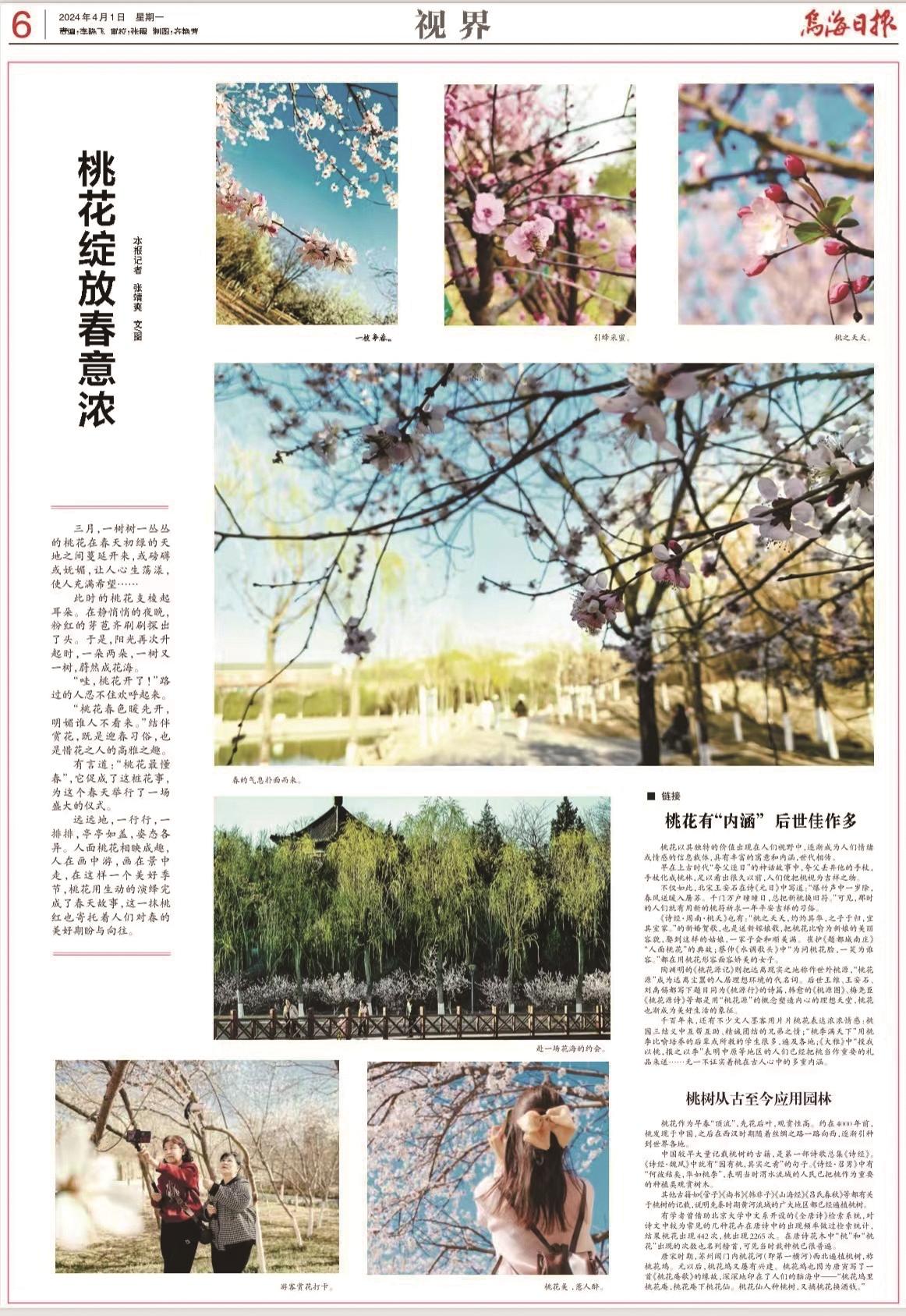 此时的桃花支棱起耳朵。在静悄悄的夜晚,粉红的芽苞齐刷刷探出了头。于是,阳光再次升起时,一朵两朵,一树又一树,蔚然成花海。2024年4月1日,记者通过实地走访拍摄我市三区各处桃花美景,刊发《桃花绽放春意浓》一文,让读者静静观看那一丛丛桃花用生动演绎完成春天的故事。