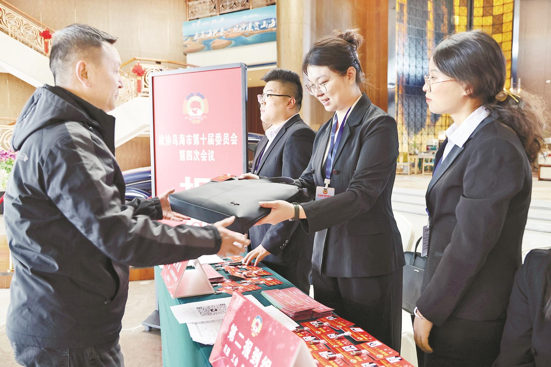 1月5日下午,出席政协乌海市第十届委员会第四次会议的政协委员陆续向大会报到。委员们有序领取有关材料,为即将召开的会议作准备。