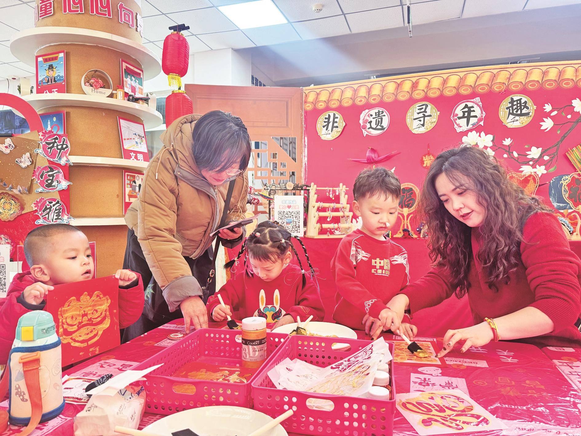 为让幼儿更好地了解中华优秀传统文化,加深对传统节日的认识,2024年12月31日,海勃湾区第八幼儿园在园内开展“知年俗 享年味 寻年趣”迎元旦主题活动。图为幼儿体验非遗项目。 (张靖爽 摄)