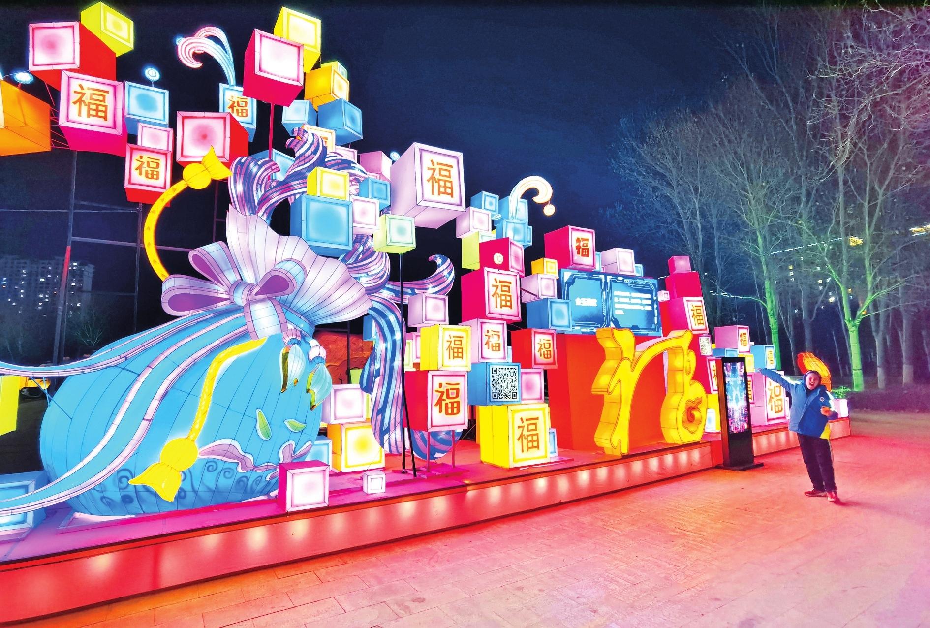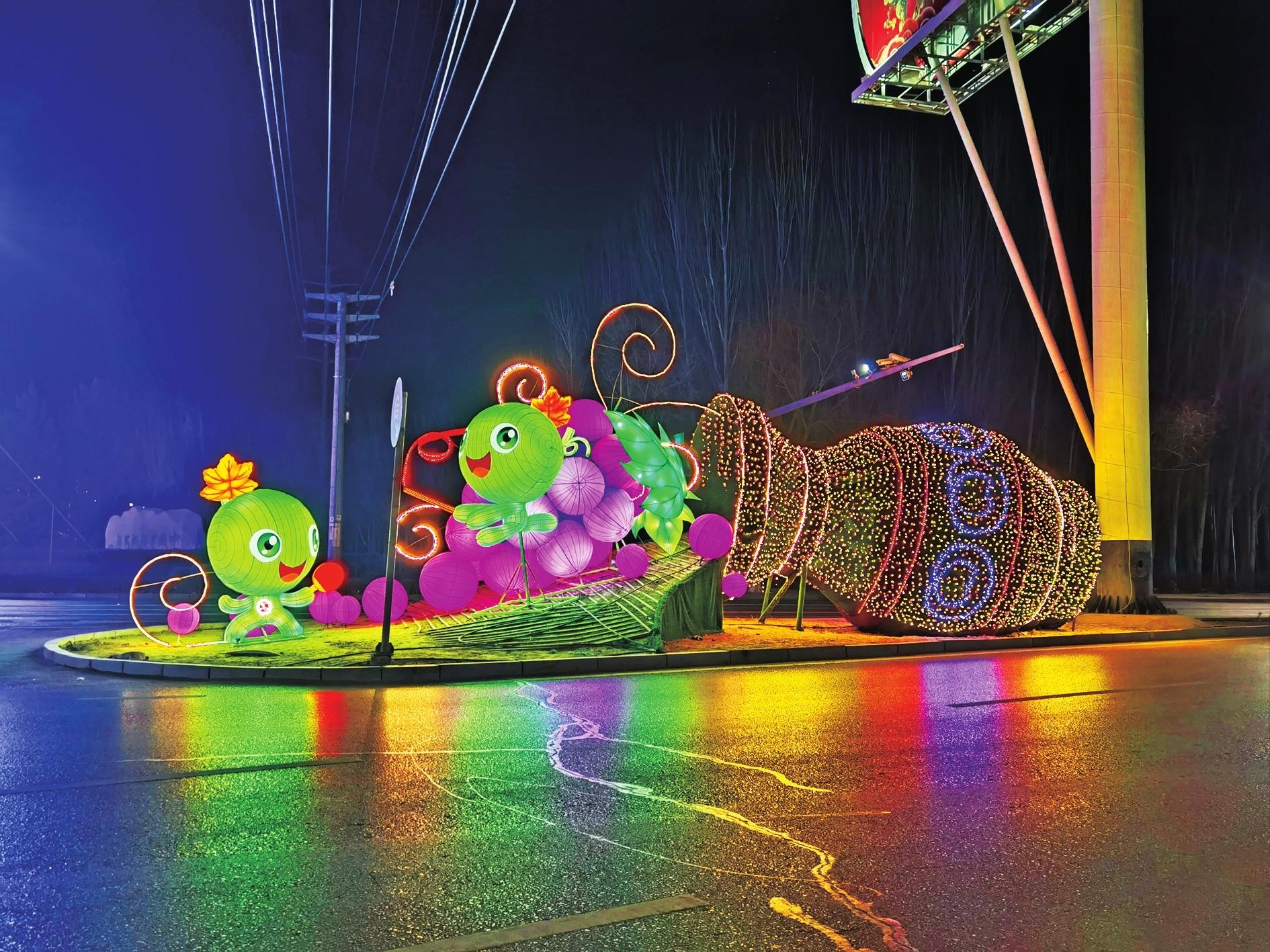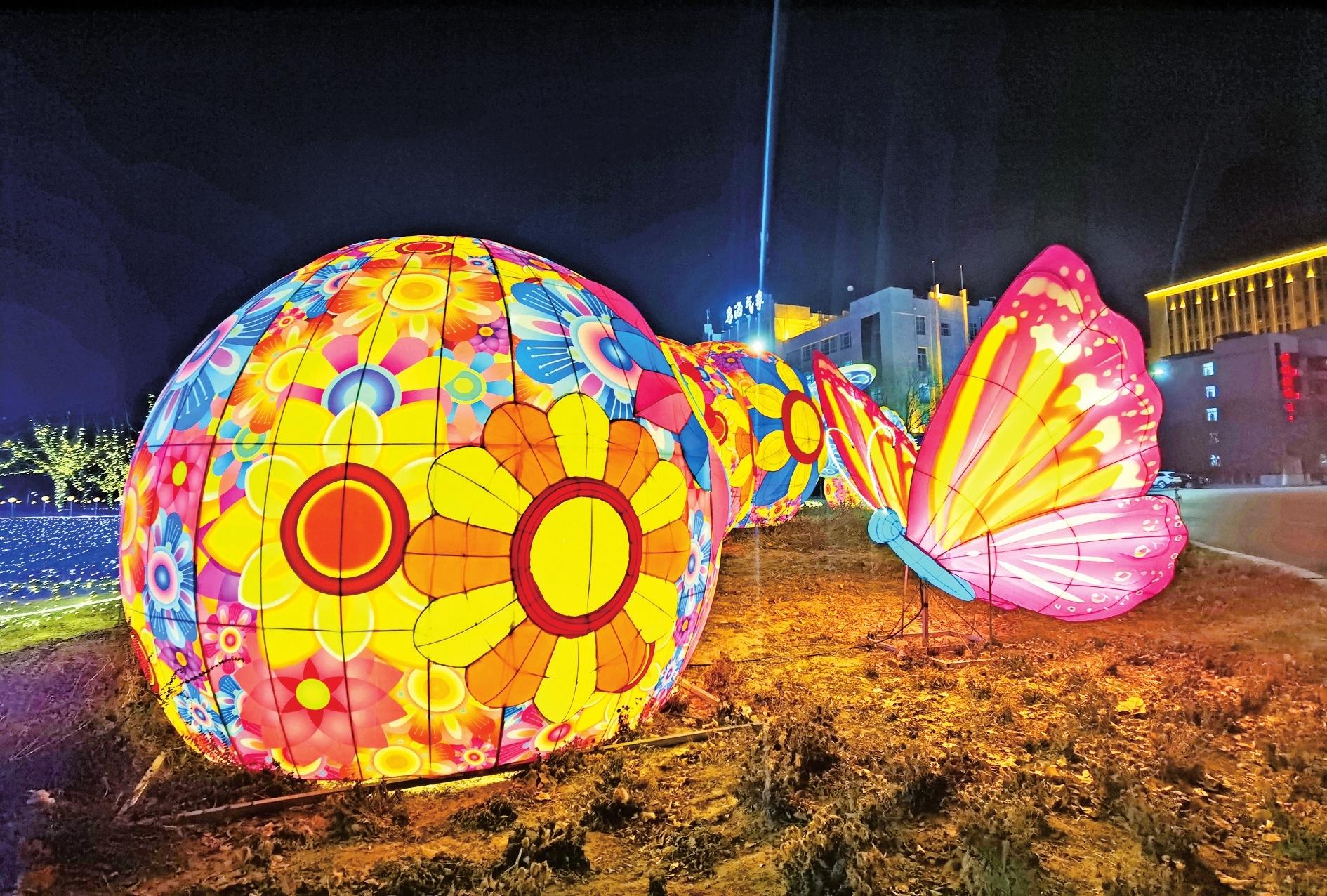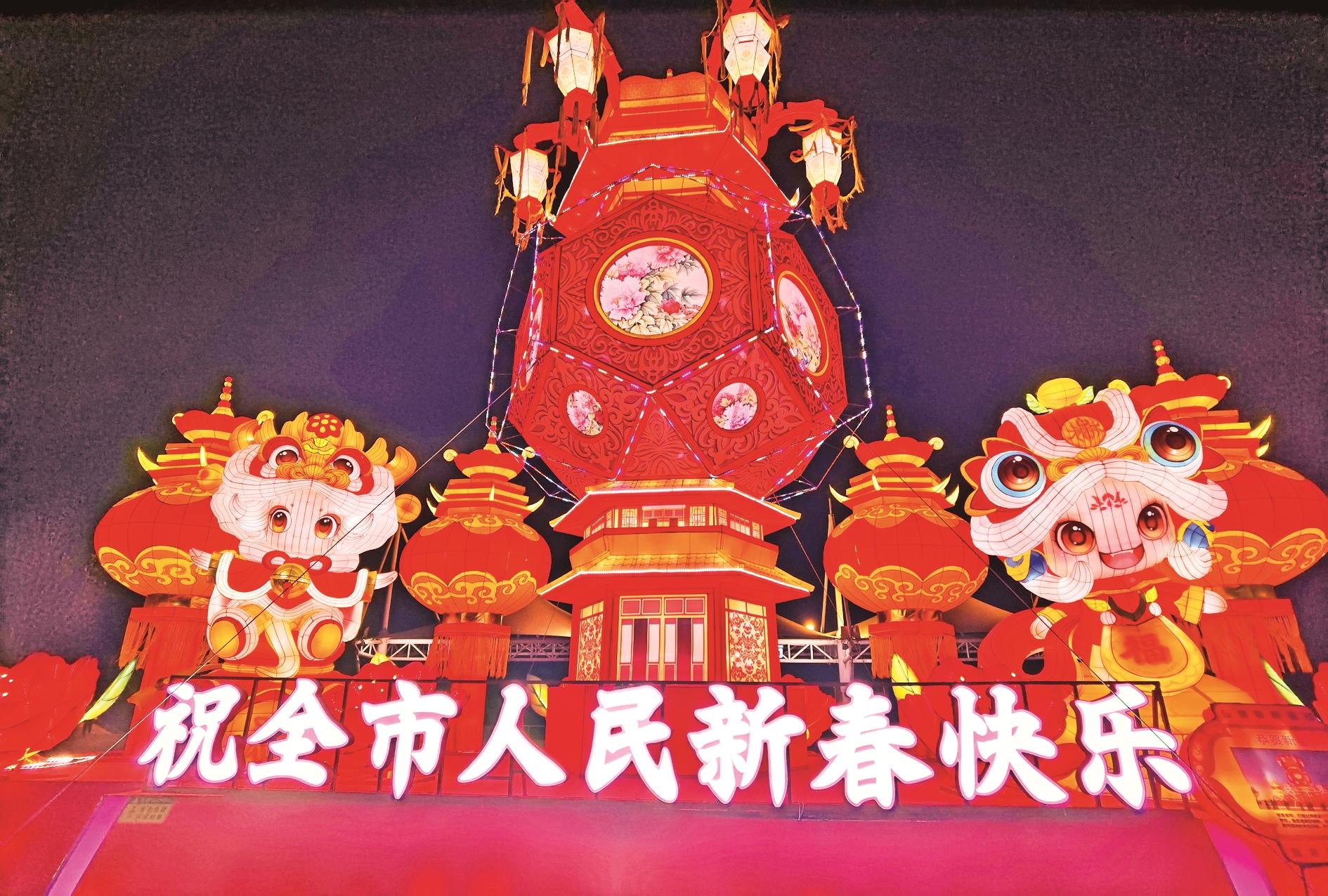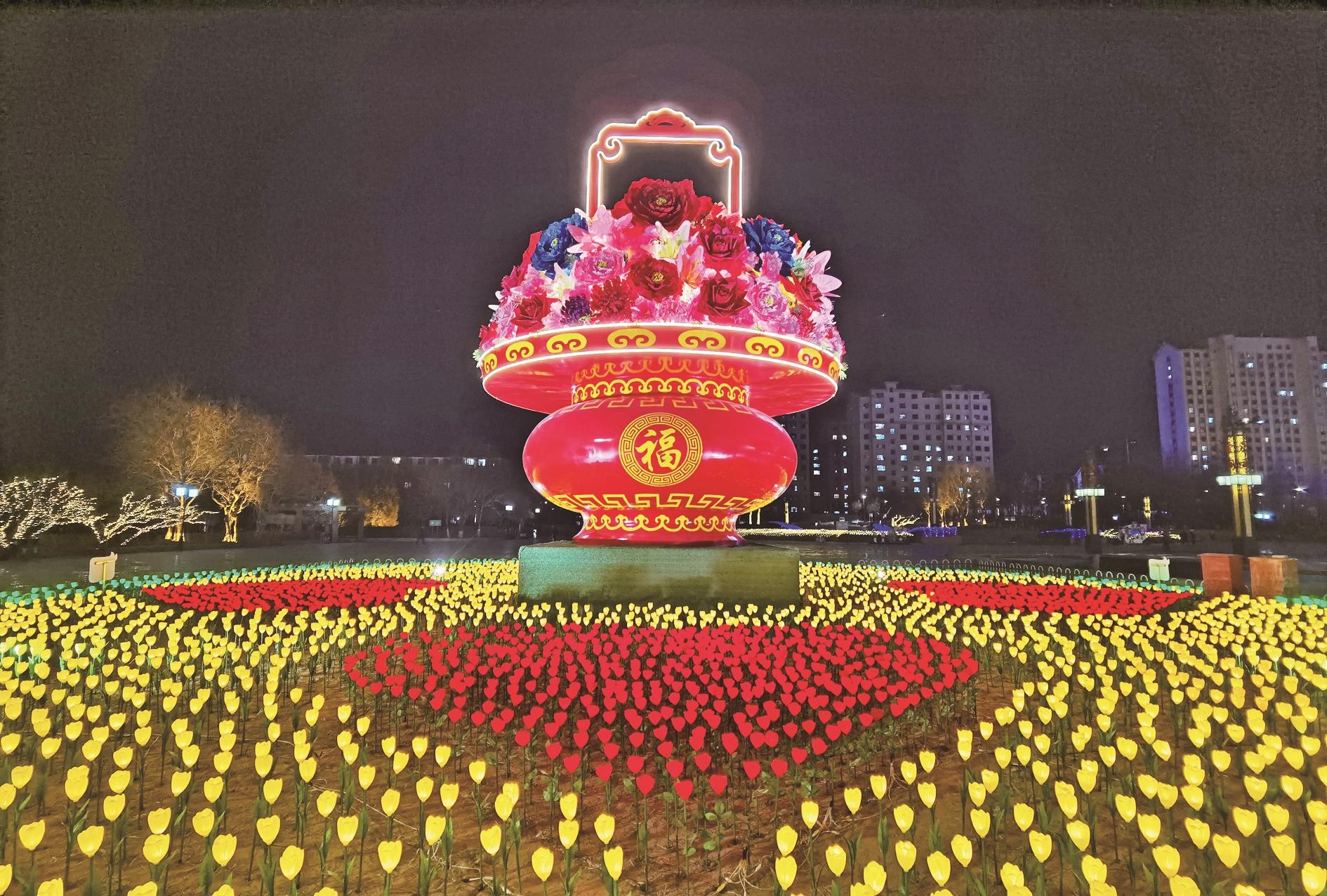 随着春节的临近,三区的迎春花灯将街道、广场、公园等处装点得格外亮丽,处处洋溢着节日的氛围。