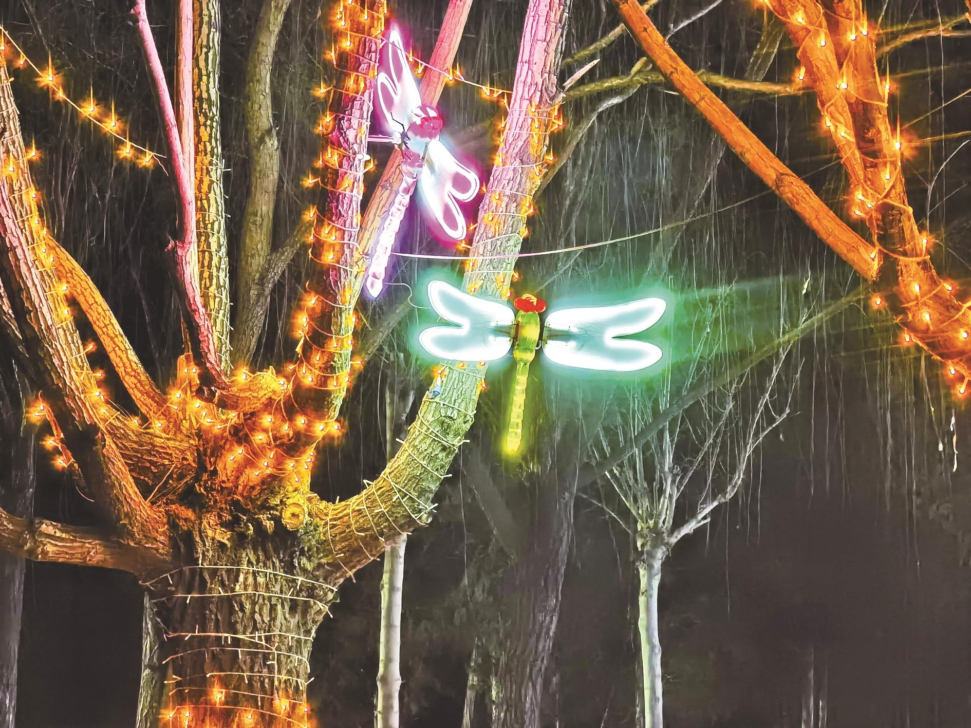 运动公园南门口“福星高照”灯组设计AI数字人拍照互动装置和运势测算;滨河大道滨河文化广场的“共贺新春”灯组蛇年吉祥物光彩夺目;市中医蒙医医院环岛处的氛围灯更是惹人流连。家住德顺祥庭小区的市民王先生告诉记者,前段时间就看到每天有不少工人在环岛绿化带内忙碌着,直到元旦前亮灯才知道是今年的迎春灯会。“从我家望下去远观最漂亮。”王先生兴奋地说,“你看,这是我们市花丁香的造型,花的周边点缀了花球、蝴蝶等灯饰。到路边细看,丁香的花蕊是装点了满天星灯串的树木,花蕊边缘是一圈白色的球形灯泡,然后是紫色、黄色灯带组成的花瓣。不得不佩服设计者的奇思妙想,让我们在夜间欣赏这一灯光美景。”